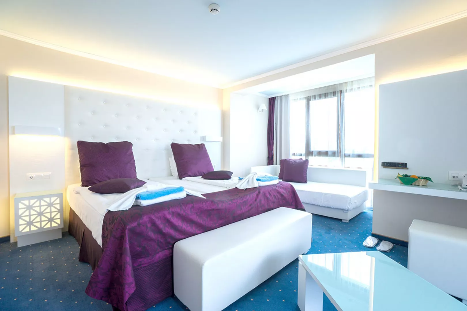 Hotel Perla Royal sa nachádza v bohatej zeleni a len približne 5 minút chôdze od rušného prázdninového centra Primorsko, známeho množstvom barov, reštaurácií a iných zábavných zariadení. Od piesočnatej pláže ho delí krásna rieka, pričom prechod na pláž je možný po moste alebo pomocou hotelového prívozu. Medzinárodné letisko Burgas je vzdialené asi 55 km.