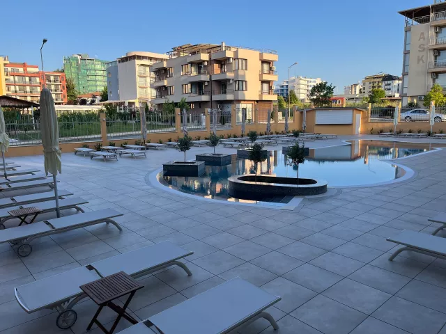V pokojnejšej severnej časti letoviska Primorsko, cca 800 m od centra, cca 200 m od piesočnatej pláže s pozvoľným vstupom do mora a cca 65 km od medzinárodného letiska Burgas.