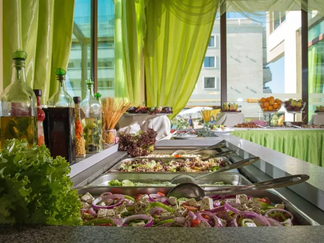 V rámci All Inclusive sú obedy a večere podávané formou bohatých bufetových stolov, ľahké občerstvenie, pizza, koláčiky a ovocie. Nealkoholické a alkoholické nápoje miestnej výroby, káva a čaj sú dostupné počas dňa až do 22:00 hod.
