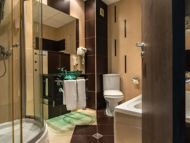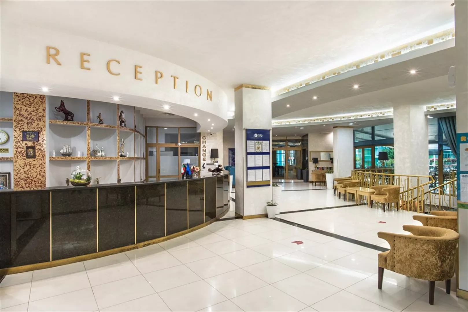 V hlavnej budove sa nachádza vstupná hala s recepciou, zmenáreň, trezory (za poplatok), výťah, reštaurácia, bar, dva vonkajšie bazény s oddelenou časťou pre deti a bar pri bazéne. K dispozícii je aj konferenčná sála a možnosť obmedzeného WiFi pripojenia na recepcii zdarma. Spa centrum ponúka krytý bazén, aromaterapiu, saunu, ľadovú sprchu, masáže. Na vyžiadanie je možné parkovanie v podzemnej garáži za poplatok (obmedzený počet miest, platba na mieste).