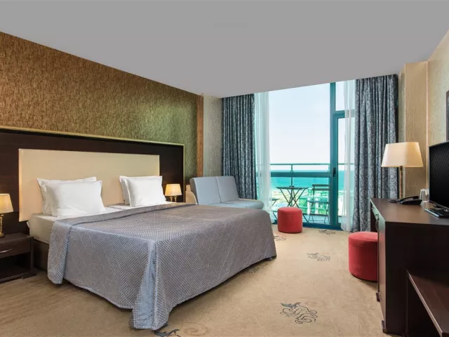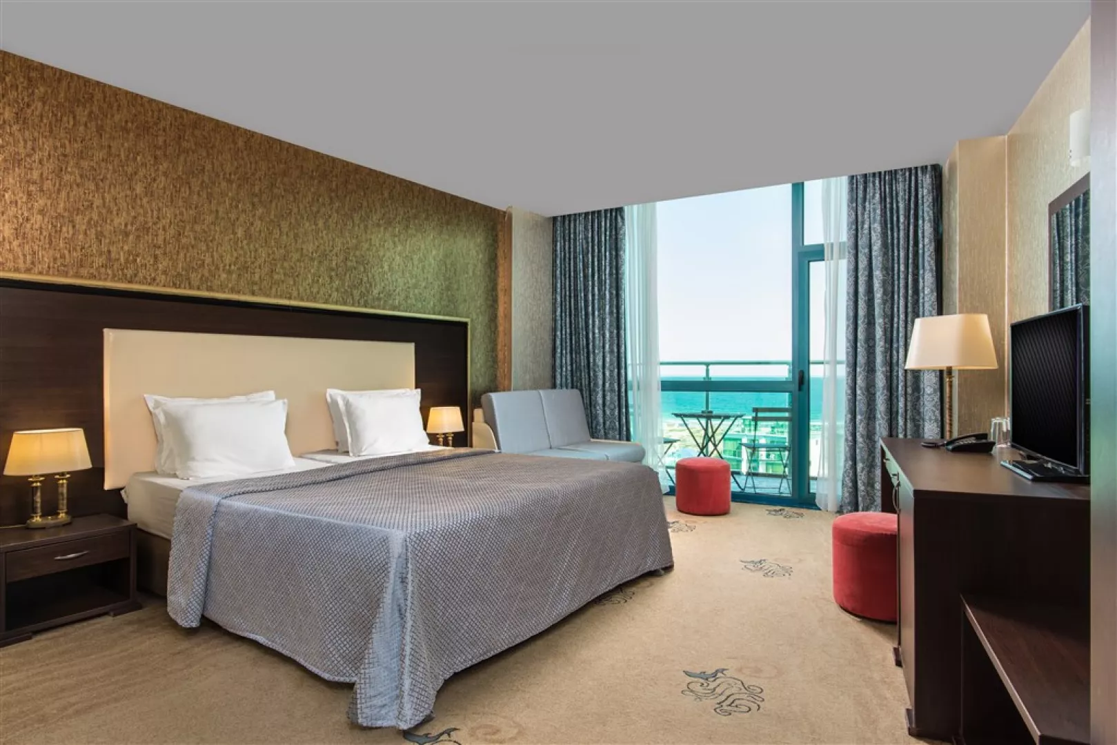Hotel ponúka klimatizované 2-lôžkové izby s možnosťou až dvoch prísteliek. Maximálna obsadenosť izby je 2 dospelé osoby a 2 deti alebo 3 dospelé osoby a 1 dieťa, s možnosťou ubytovania 2 dospelých a 3 detí v obmedzenom počte izieb. Izby sú vybavené SAT-TV, malou chladničkou, sprchou/WC, sušičom na vlasy, trezorom a balkónom. Detská postieľka je na vyžiadanie zdarma (obmedzený počet).
