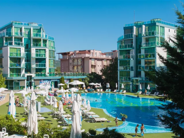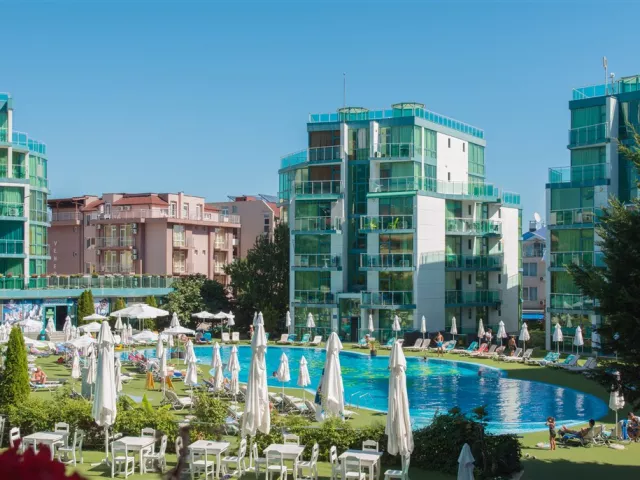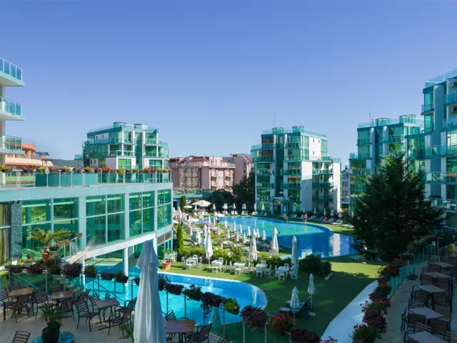 Hotelový komplex sa nachádza v severnej časti strediska Primorsko, približne 500 metrov od aquaparku a len 10 minút chôdze do centra mesta.