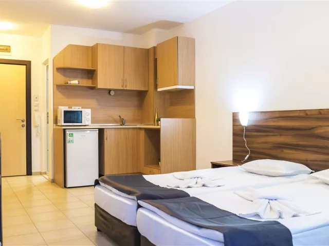 Hotel sa nachádza 200 metrov od centra Slnečného pobrežia a 60 km od letiska Burgas.