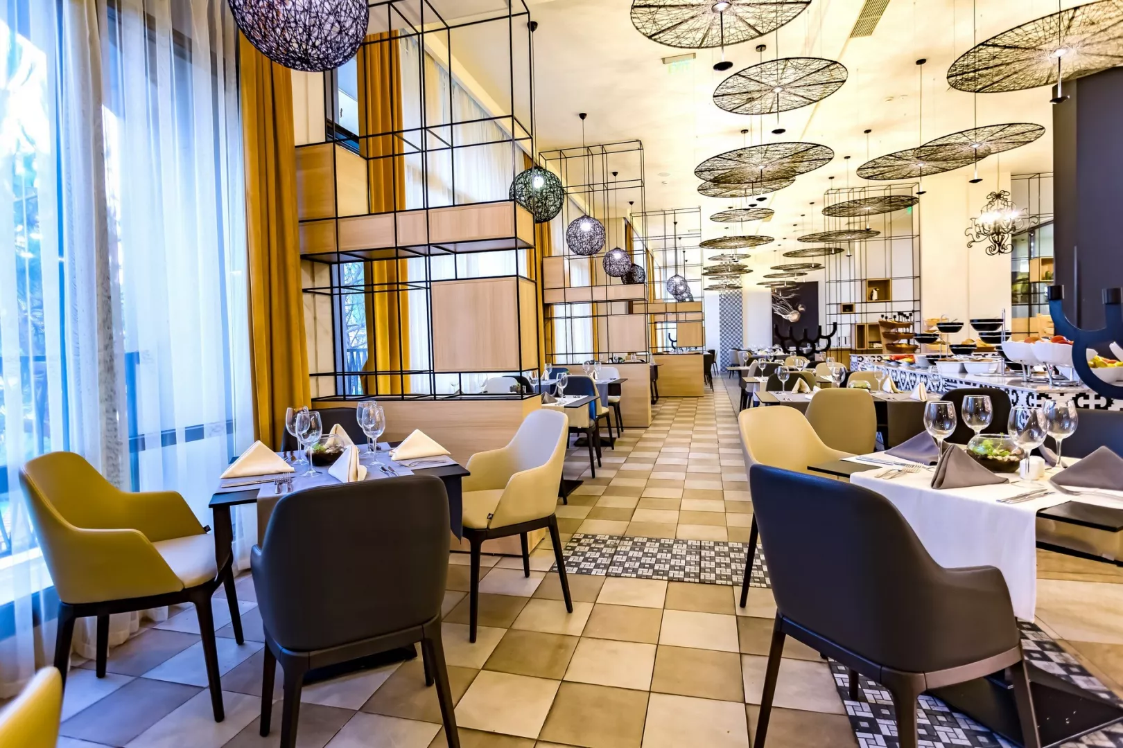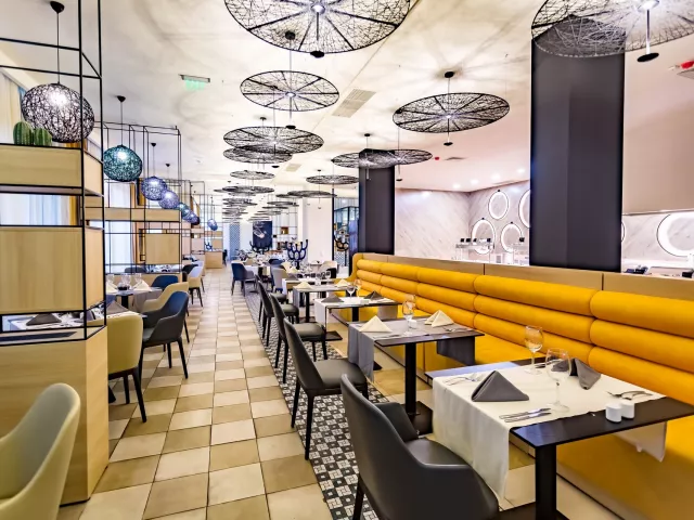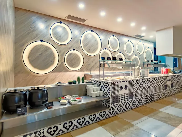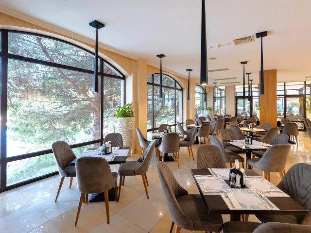 All Inclusive: Hlavná reštaurácia: 07.30–10.00 raňajky formou bufetu, 10.30-12.00 neskoré raňajky, 12.00–14.00 obed formou bufetu, 18.00–21.00 večera formou bufetu, pri raňajkách káva, čaj, nealkoholické nápoje, pri obede a večeri vybrané alkoholické nápoje (všetko miestnej výroby, rozlievané) Lobby bar: 10.00–23.00 nealkoholické a vybrané alkoholické nápoje (všetko miestnej výroby, rozlievané) Šport bar: 18.00–23.00 nealkoholické a vybrané alkoholické nápoje (všetko miestnej výroby, rozlievané) Bar pri bazéne: 12.00–17.00 ľahké občerstvenie, zmrzlina, 10.00–23.00 nealkoholické a vybrané alkoholické nápoje (všetko miestnej výroby, rozlievané) Upozornenie: vyššie uvedené časy aj miesta podávania sú určené hotelom a môžu sa zmeniť