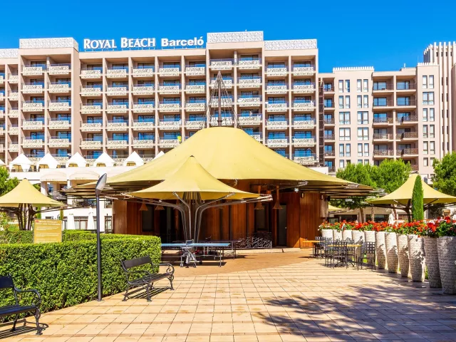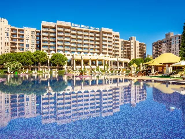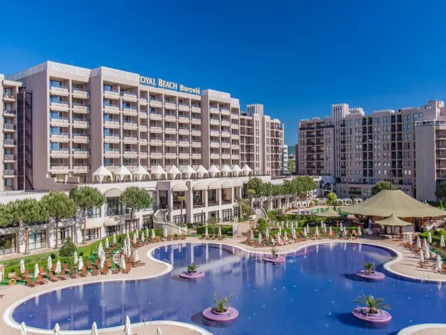 Rozľahlý päťhviezdičkový hotel Barcelo Royal Beach sa nachádza v samom srdci turistického komplexu Slnečné pobrežie, len pár metrov od širokej piesočnatej pláže s pozvoľným vstupom do mora. Luxusný rezort, ktorý je zložený z troch budov, vyniká svojou výbornou polohou aj kvalitou služieb. Hotel disponuje 2 vonkajšími bazénmi a vyhrievaným vnútorným bazénom, ktorý môžu hostia bezplatne využívať. K dispozícii je klientom široká škála služieb a voľnočasových aktivít, či už vo vnútri hotelového komplexu alebo mimo neho. Hotel je možné odporučiť aj náročnejším klientom.