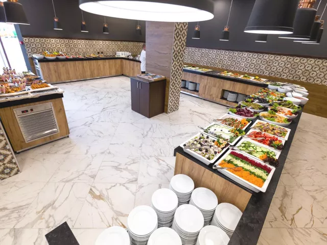 Hotel ponúka rôzne možnosti stravovania vrátane bufetu na raňajky a večere. K dispozícii je aj koncept all-inclusive s rôznymi jedlami a nápojmi počas celého dňa, vrátane miestnych alkoholických a nealkoholických nápojov.