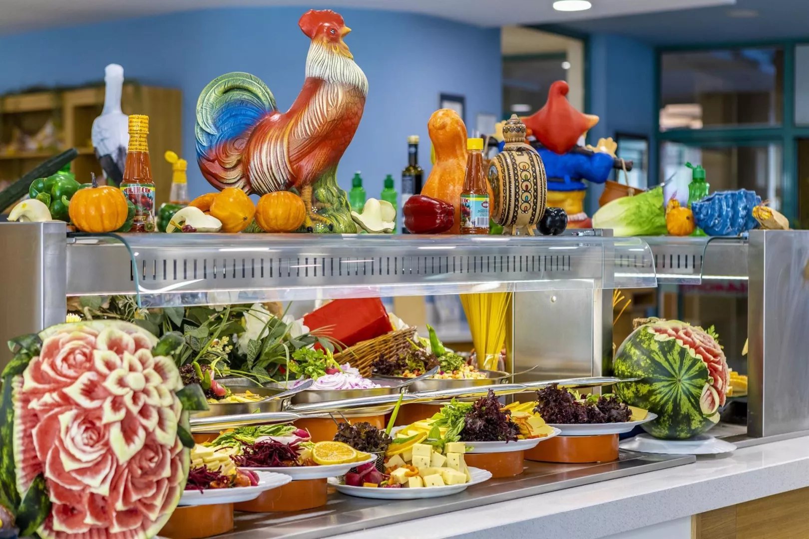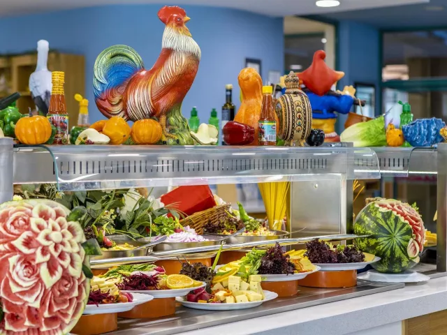 AI - All Inclusive Koncept zahŕňa raňajky, obedy a večere vo forme bufetových stolov, občerstvenie počas dňa, lokálne alkoholické, vybrané importovane alkoholické a nealkoholické nápoje, tematické večere.