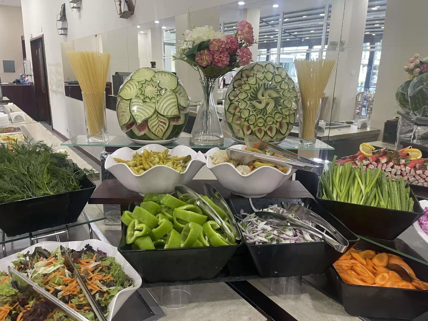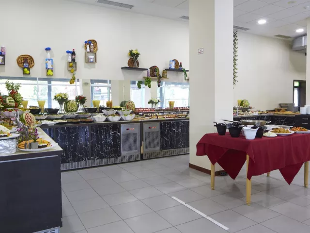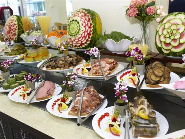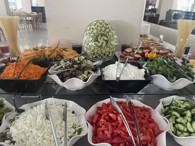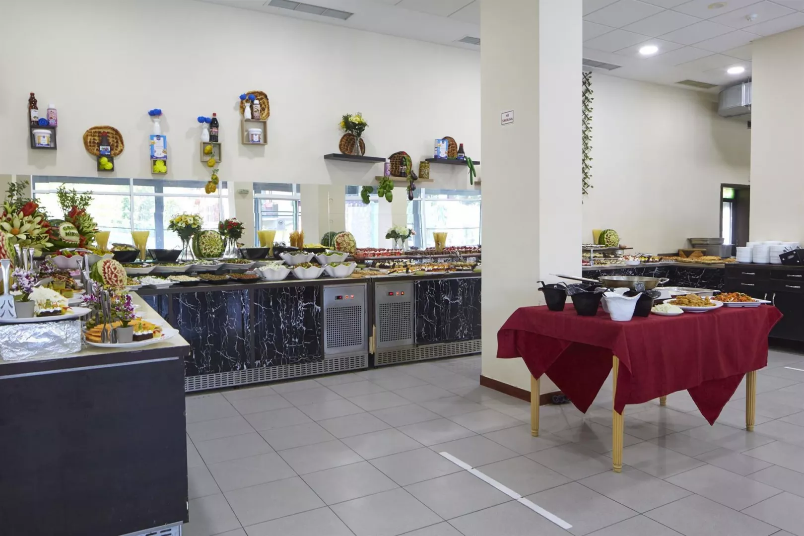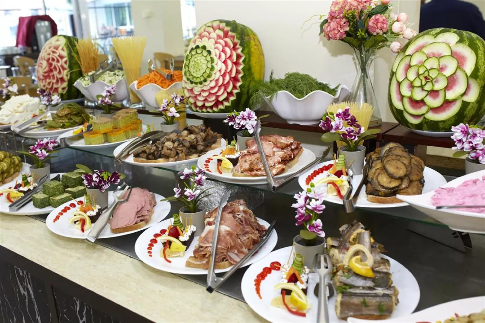 Hotel ponúka stravovanie typu all inclusive, ktoré zahŕňa raňajky, obedy a večere formou bufetu, ako aj občerstvenie počas dňa. K dispozícii sú studené a teplé nápoje, vrátane alkoholu a nealkoholických nápojov.