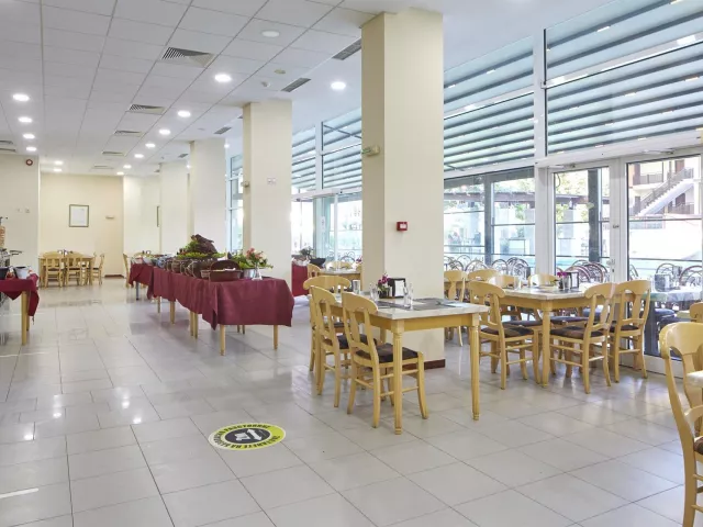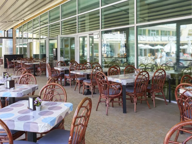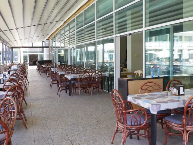 Hotel ponúka vstupnú halu s recepciou, hlavnú a à la carte reštauráciu, bary (vrátane baru pri bazéne a beach baru), vonkajší bazén, detský bazén a snack bar. K dispozícii sú plážové osušky, ležadlá a slnečníky pri bazéne без poplatku. Animácie pre deti a bezbariérový prístup sú tiež súčasťou hotela. Wifi je dostupné zdarma vo všetkých priestoroch.