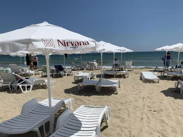 Krásna široká piesočnatá pláž s pozvoľným vstupom do mora je vzdialená len 150 metrov od hotela. Ležadlá a slnečníky sú na pláži dostupné без poplatku.