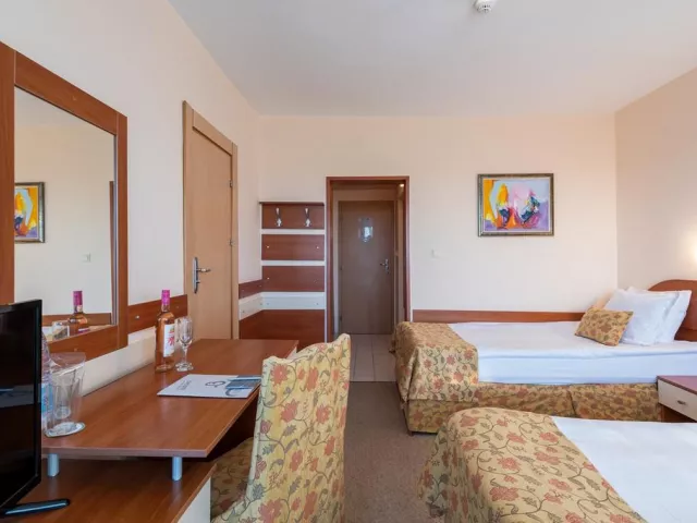 Hotel Burgas Beach sa nachádza priamo na rozľahlej piesočnatej pláži a ponúka krásny výhľad na celé Slnečné pobrežie. Bol zrekonštruovaný a zahrňuje bazén s toboganmi, ktorý je výnimočnou súčasťou pre rodiny s deťmi. Hotel disponuje modernými službami a zariadeniami.