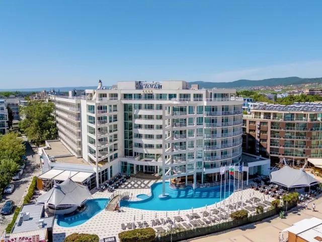 Hotel Effect Grand Victoria sa nachádza v srdci Slnečného pobrežia, len 5 km od historického mesta Nessebar a 30 km od letiska Burgas. Hotel je situovaný na plážovej promenáde, čo zaručuje pohodlný prístup k piesočnatej pláži, ktorá sa nachádza len 30 metrov od hotela.