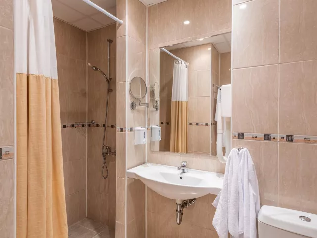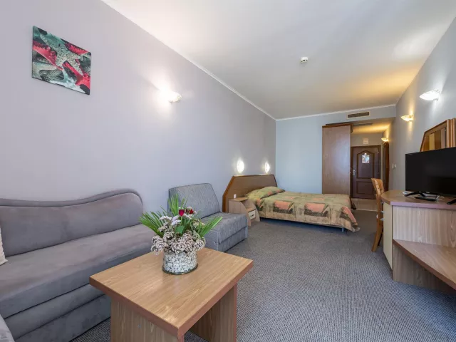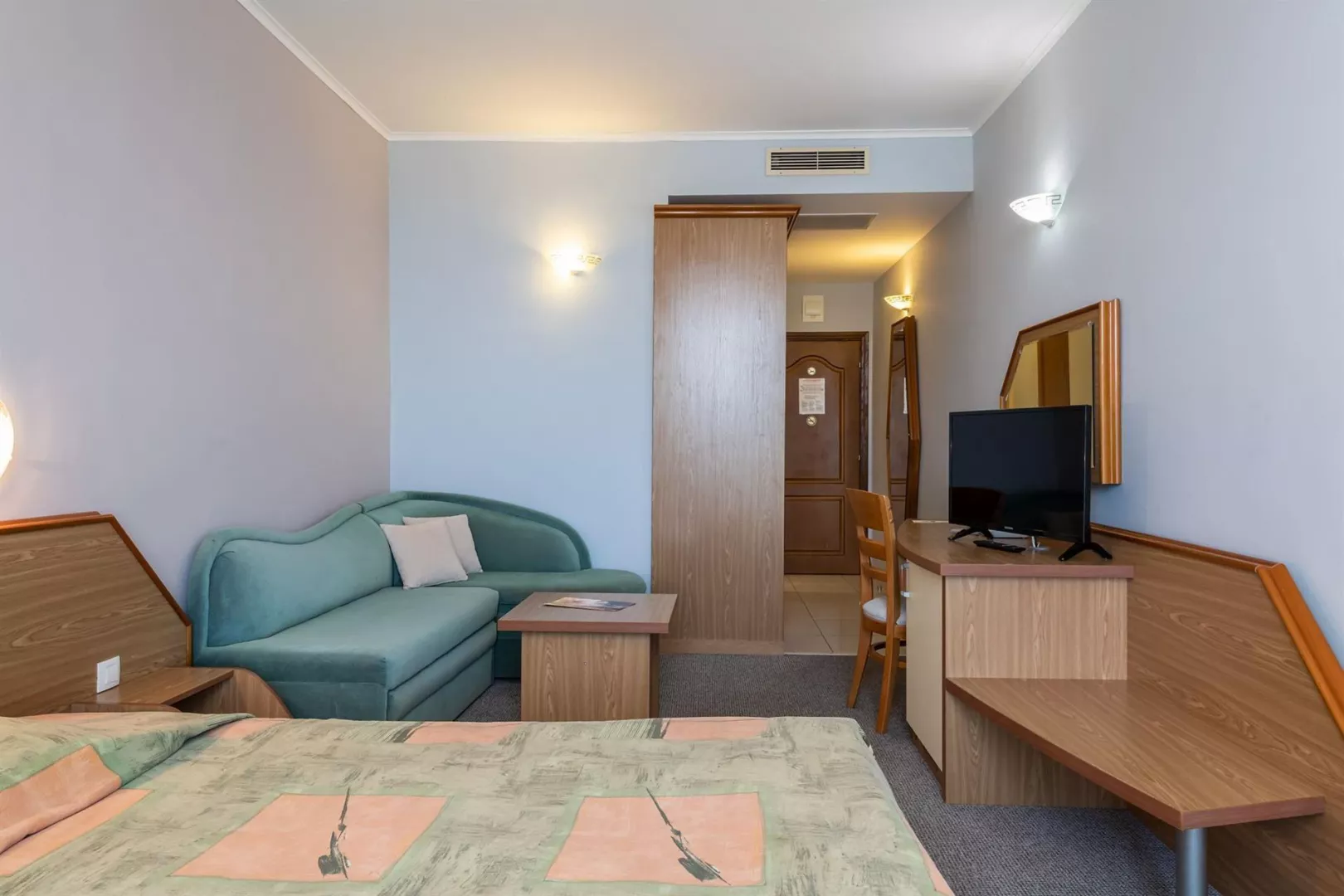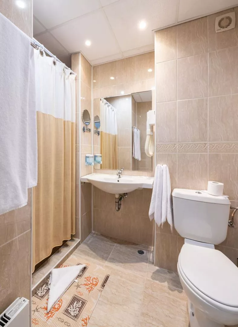 Izby sú vybavené balkón klimatizácia TV mini chladnička kúpeľňa fén Eco, Promo a Club izby sú znevýhodnené polohou, veľkosťou alebo nemusia mať balkón