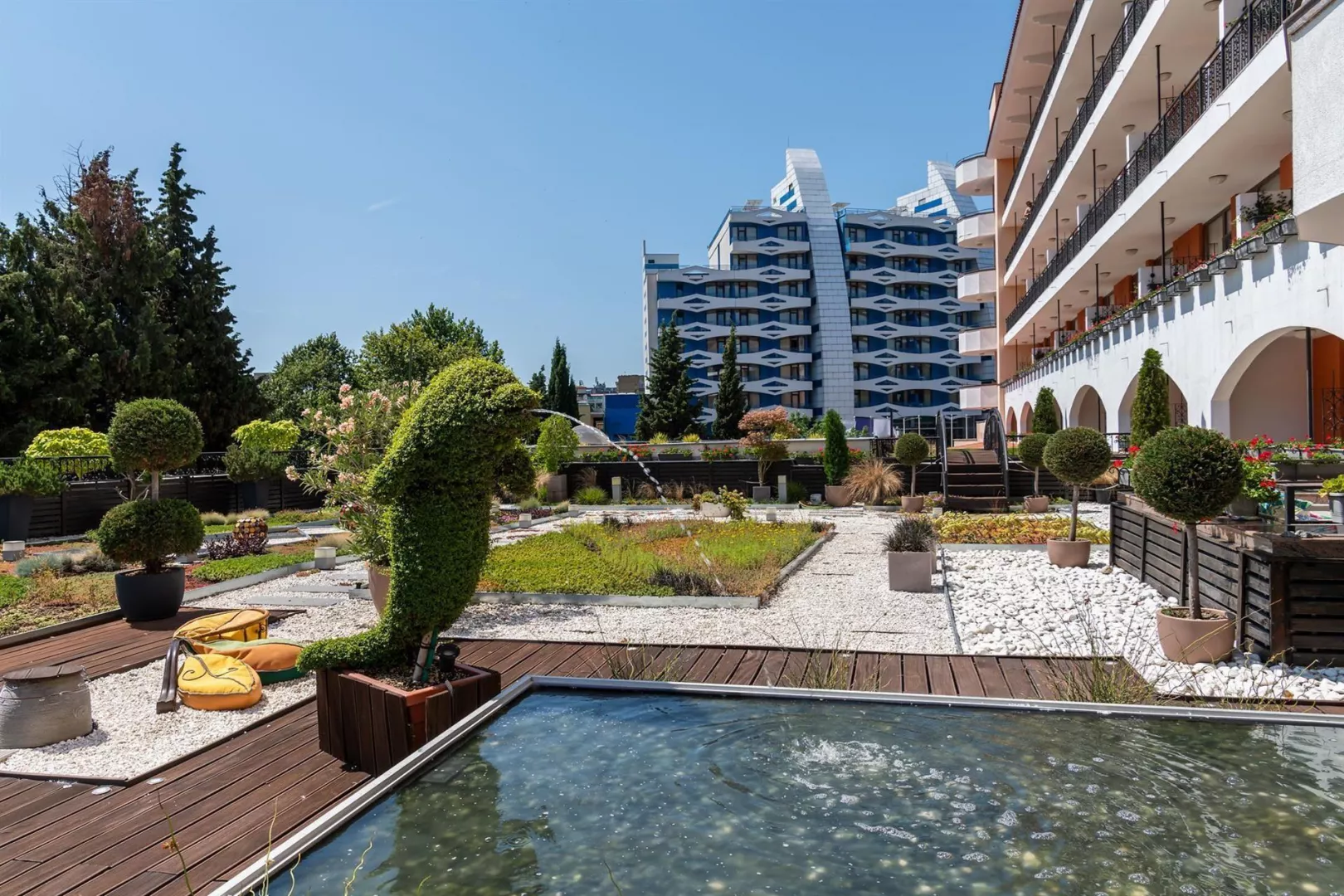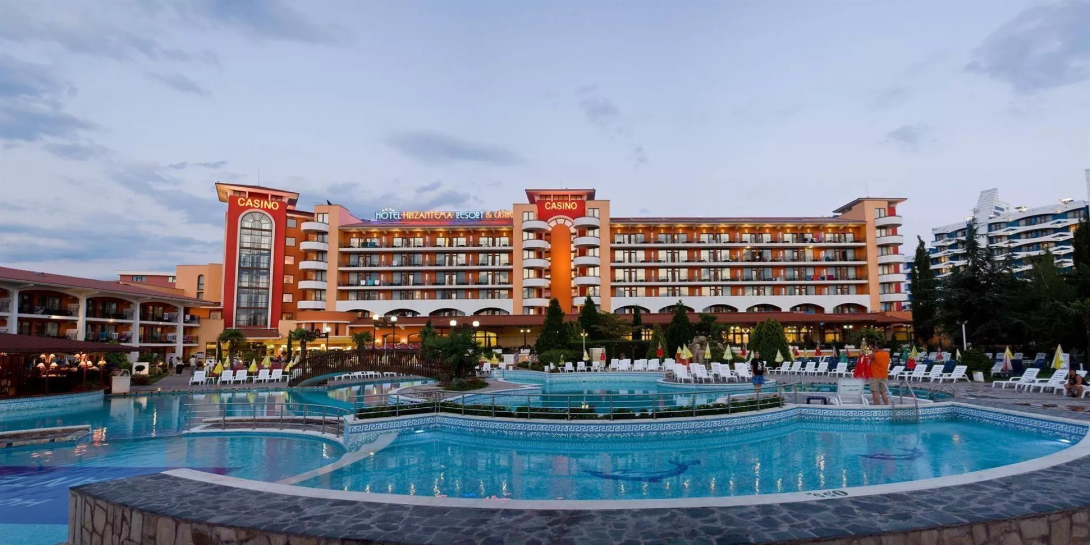 All inclusive Koncept zahŕňa Medzinárodná kuchyňa vrátane širokého výberu čerstvých šalátov a špecialít. Široká ponuka ovocia a dezertov. raňaky, obed, večera bar pri bazéne miestne alkoholické nápoje, nealkoholické nápoje, pivo, víno Snack bar hot dog, sendviče, sezónne ovocie, pizza, zmrzlina Lobby bar miestne alkoholické nápoje, koktaily, nealkoholické nápoje, pivo, víno 1000-2300 hod. Medzinárodné alkoholické nápoje za poplatok 1000-2300 hod. Cukráreň 1500-1700 Balíček all inclusive začína večerou a končí obedom. Hotel si vyhradzuje právo na zmenu balíčka all inclusive a zábavného programu. Hotel si vyhradzuje právo zmeniť dobu podávania jedál v hlavnej reštaurácii.