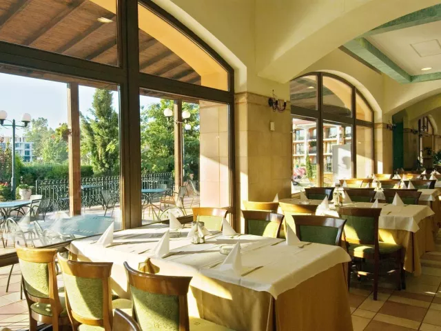 hlavná reštaurácia reštaurácia ala carte s terasou (nutná rezervácia ) vonkajší bazén (slnečníky a lehátka bez poplatku ) 3 bary lobby bar, bar pri bazéne , Sunny bar Wi-Fi v lobby (bez poplatku)