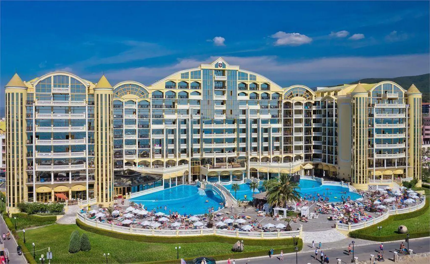 AIP - all inclusive plus drinks ALL - all inclusive Koncept ALL REŠTAURÁCIA HOLLYWOOD RAŇAJKY Bufet - bufet, zahŕňajú teplé nápoje, kávu, nealkoholické nápoje, vodu a džúsy. OBED Bufet, zahŕňa vodu, džús, nealkoholické nápoje, čapované pivo a víno. VEČERA bufet, zahŕňa vodu, džús, nealkoholické nápoje, čapované pivo a víno. Tematické večere v hlavnej reštaurácii Bary All Inclusive Nápoje - LOBBY BAR SAFARI 1000 1700 /posledné objednávky - 1645/ - BAR PRI BAZÉNE 1000 2200 /posledné objednávky - 2145/ - ÍRSKY BAR 1700 2300 /posledné objednávky - 2245/ Čapované bulharské alkoholické nápoje, koktaily, nealkoholické a sýtené nápoje, teplé a studené občerstvenie. Bary All Inclusive Nápoje - Bar Mezzanine 1000 1300 a 1700 2100 - Vybraný bulharský a importovany alkohol, sódy, frappé, koktaily, nealkoholické a sýtené nápoje, teplé a studené občerstvenie. - PLÁŽOVÝ BAR 0900 1700 Snack bar jedlo a nápoje - 1000 1700 Občerstvenie Ponúka rôzne druhy sendvičov, hamburgerov, čerstvé ovocie, zmrzlinu, teplé a studené nápoje Bazén a relaxačná zóna 0900 1800 Vonkajší bazén s detskou časťou Lehátka a slnečníky pri bazéne / do vypredania zásob/ Uchovávanie slnečníkov a ležadiel uterákmi a inými predmetmi nie je tolerované. 0900 1900 Relaxačná zóna Krytý bazén - Pláž ALL INCLUSIVE hosťom je k dispozícii jeden slnečník a dve ležadlá na pláži pred hotelom / do vypredania zásob/ na izbu. Ležadlo a slnečník na pláži sa pri balíčku ALL INCLUSIVE platia zvlášť a službu zabezpečuje externý prevádzkovateľ hotela. Uchovávanie slnečníkov a ležadiel uterákmi a inými predmetmi nie je tolerované. *Plážové osušky za zálohu.