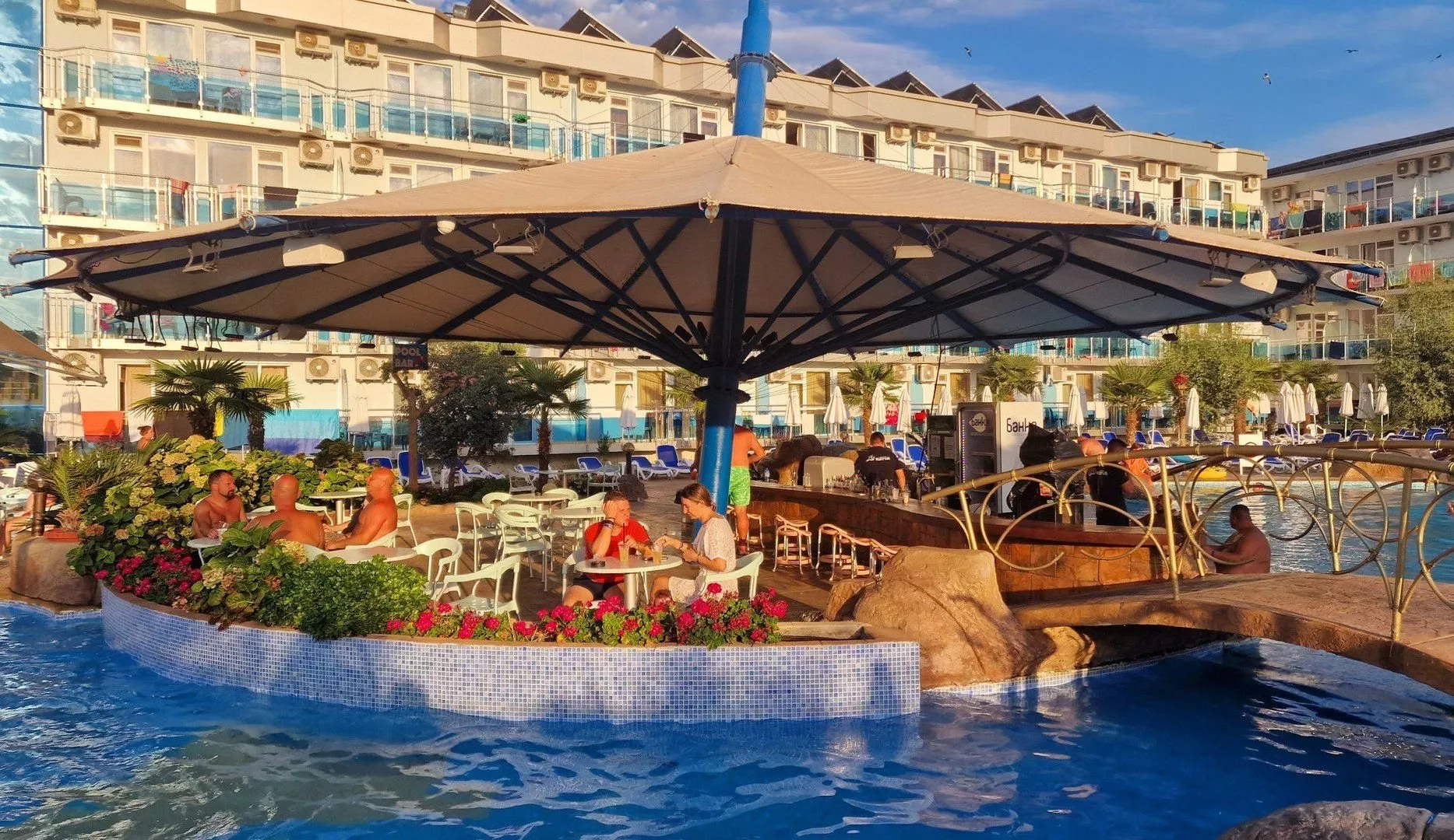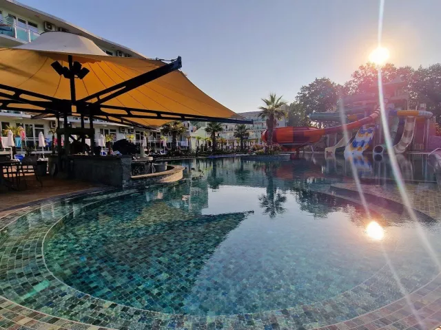 Hotel ponúka množstvo aktivít na voľný čas, ako sú bazénové hry, vodné športy, mini golf a animačné programy pre deti aj dospelých. V areáli sa nachádzajú tri bazény – vrátane detských sekcií v akvaparku. K dispozícii sú aj športové ihriská a možnosť upokojujúcich masáží.