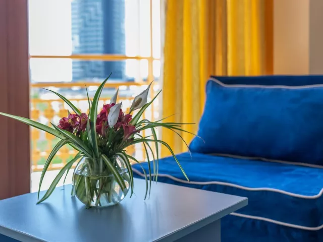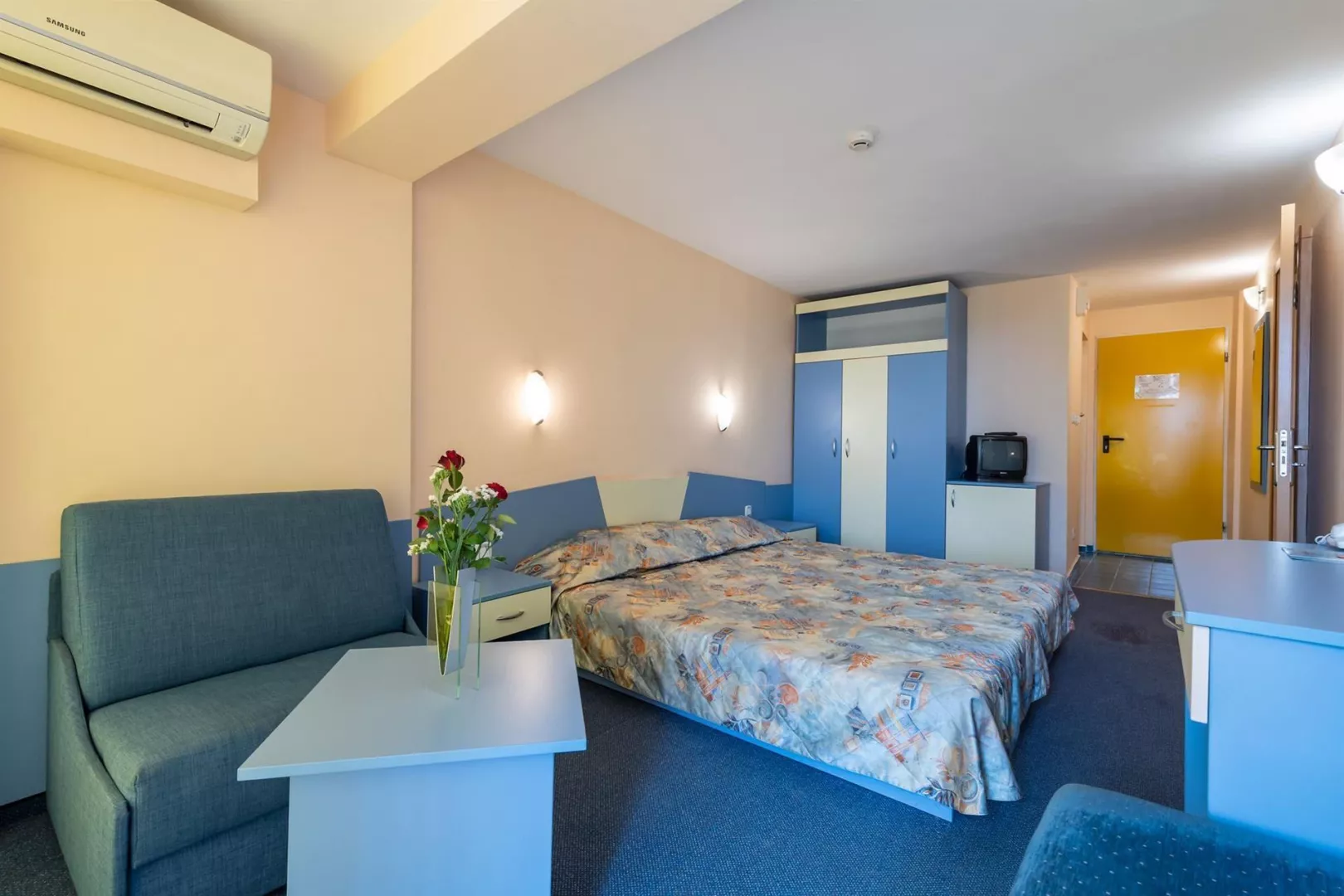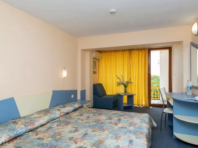 Hotel ponúka rôzne typy izieb, vrátane dvojlôžkových izieb s možnosťou prístelky, rodinných izieb pre 4 – 5 osôb, a jednolôžkových izieb. Vybavenie zahŕňa TV, telefón, klimatizáciu, minichladničku (za poplatok), vlastné sociálne zariadenie, sušič na vlasy a balkón. V rámci hotela sú k dispozícii aj verejné WiFi, hlavná reštaurácia a niekoľko tematických reštaurácií.