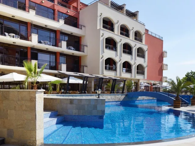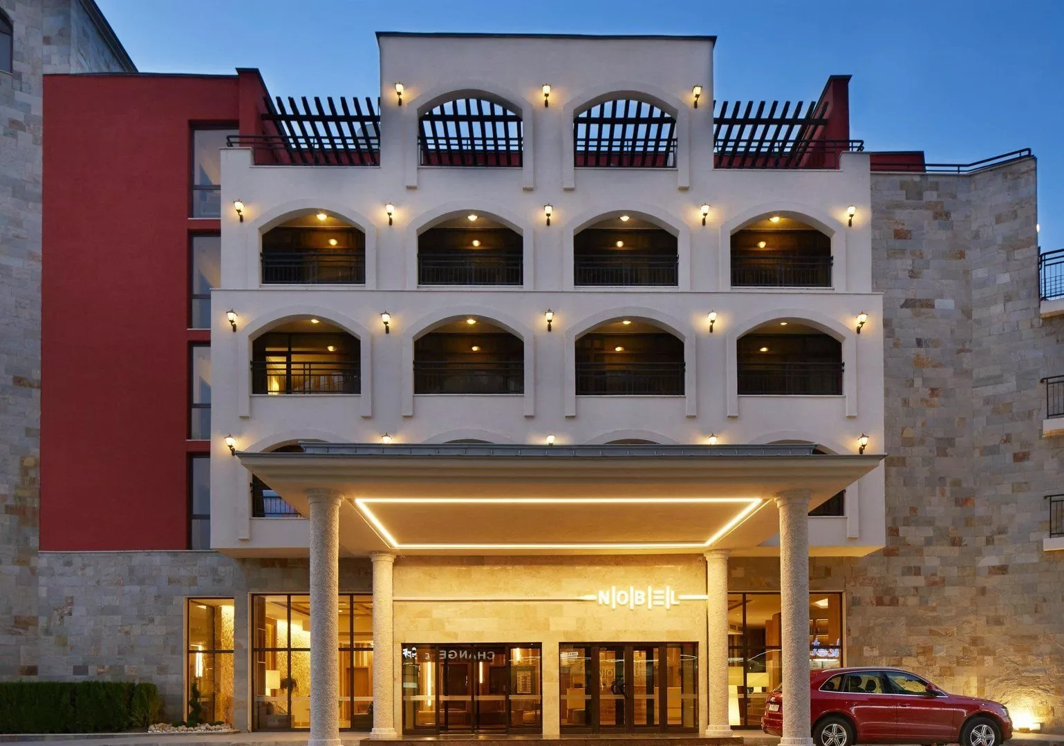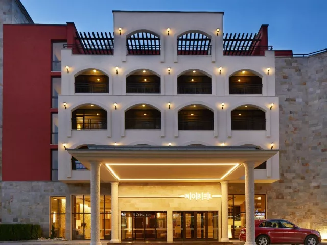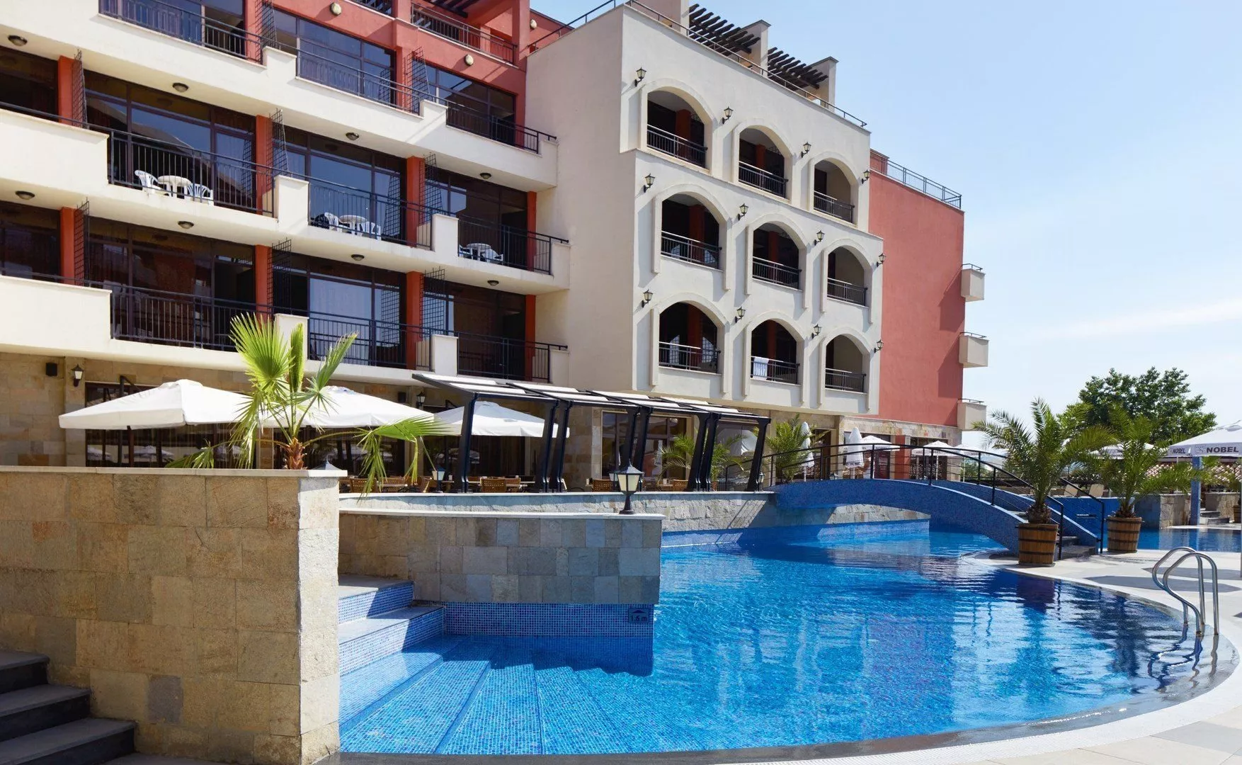 Hotel Nobel sa nachádza v južnej časti Slnečného pobrežia, približne 3 km od centra letoviska a 2 km od historického centra Nesebaru. Letisko Burgas je vzdialené asi 25 km, zatiaľ čo letisko Varna je 103 km od hotela. Nákupné možnosti sú do 200 m od komplexu.