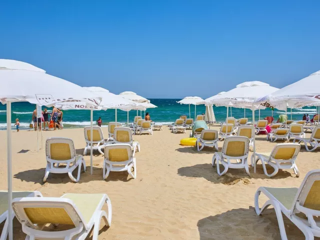 Piesočná pláž s pozvoľným vstupom do mora sa nachádza približne 200 m od hotela. Lehátka a slnečníky sú k dispozícii zadarmo podľa dostupnosti.