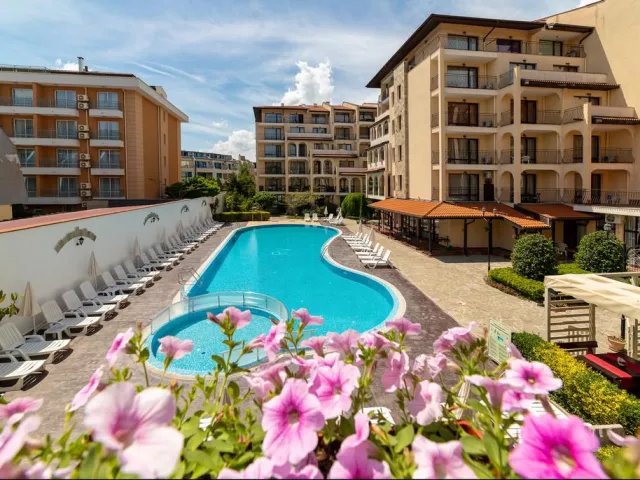 Hotel sa nachádza 3 km od centra Slnečného pobrežia a 25 km od letiska Burgas.