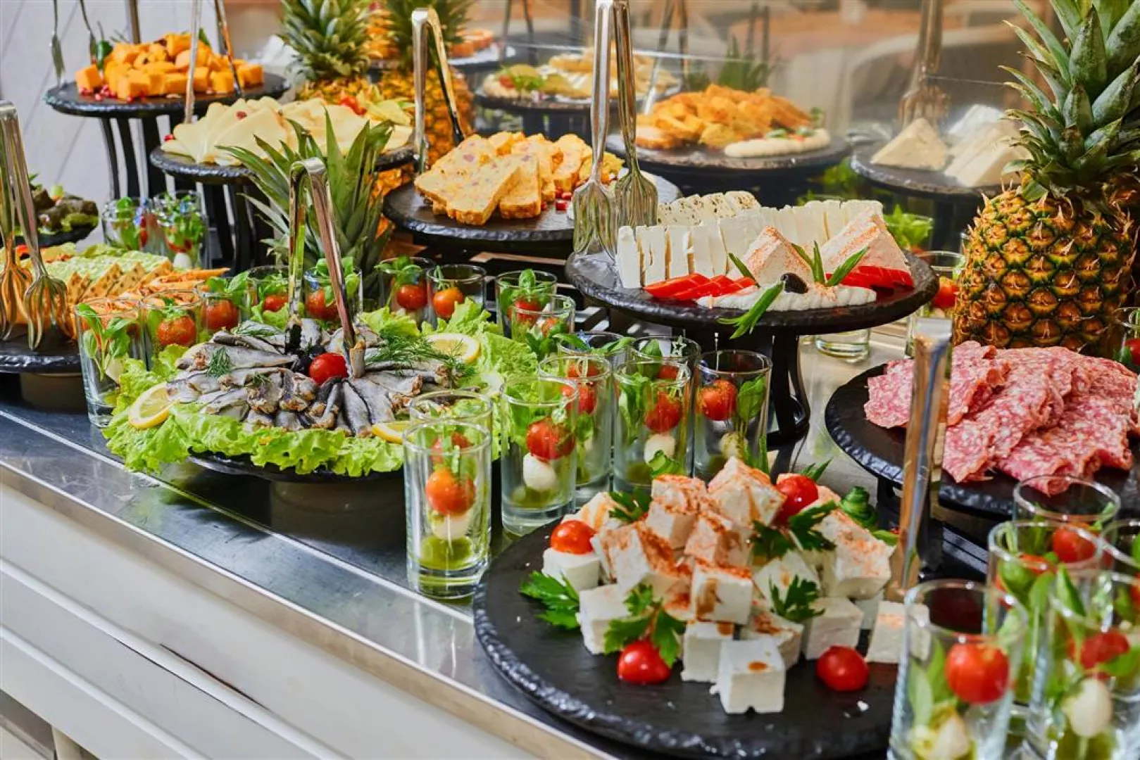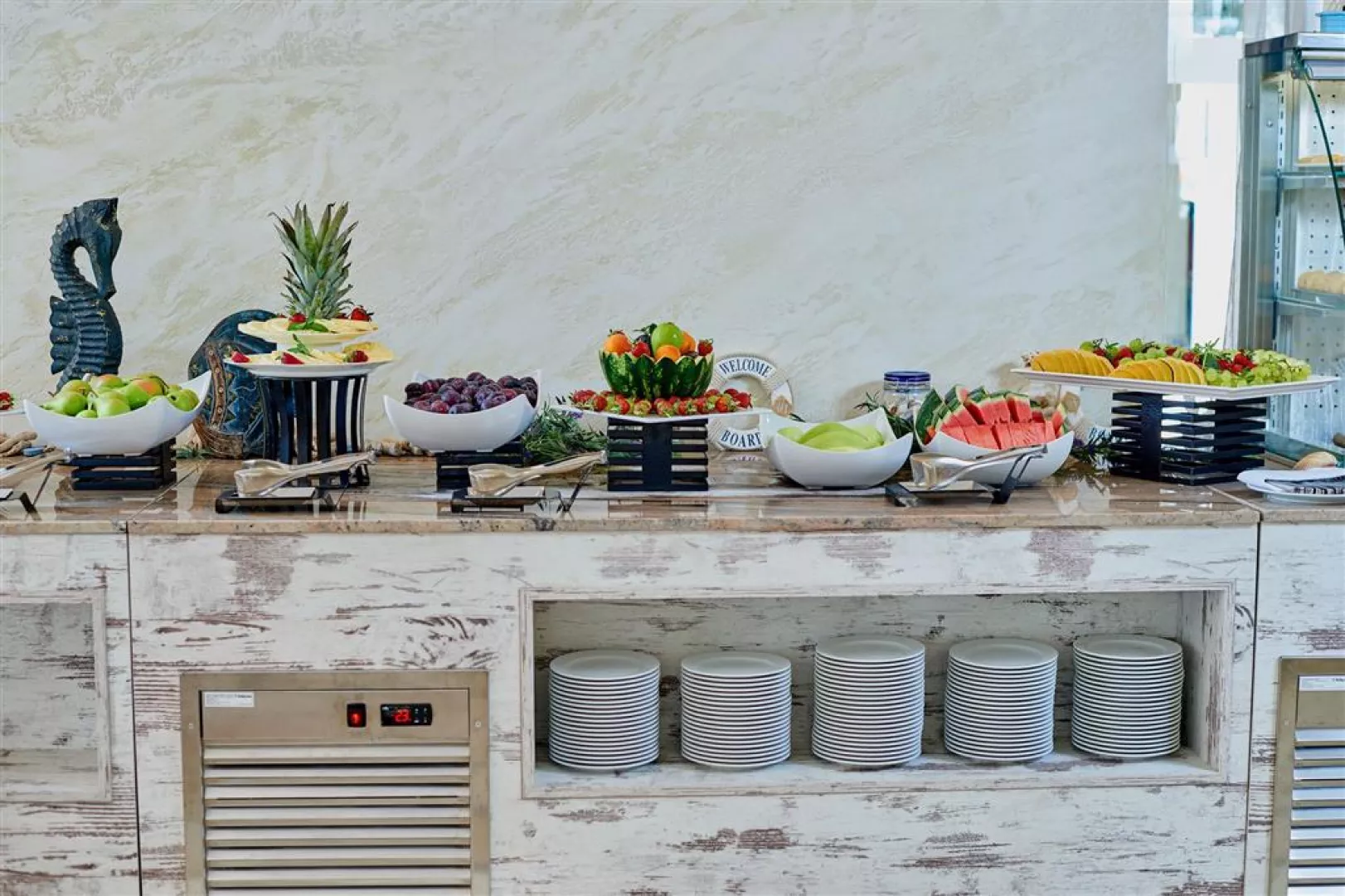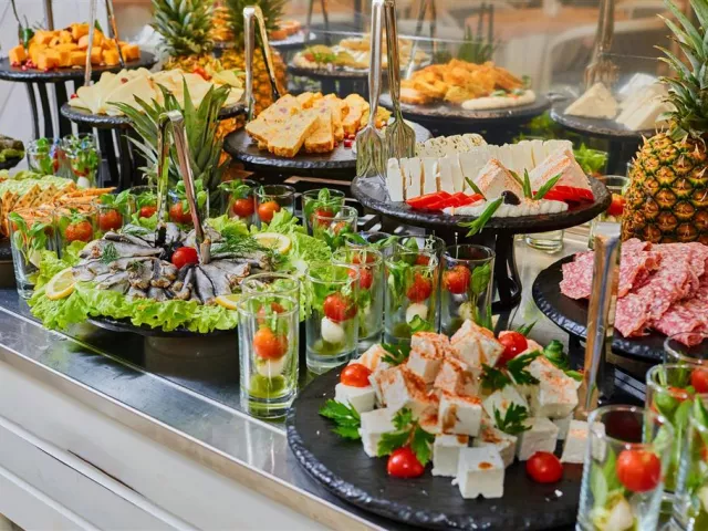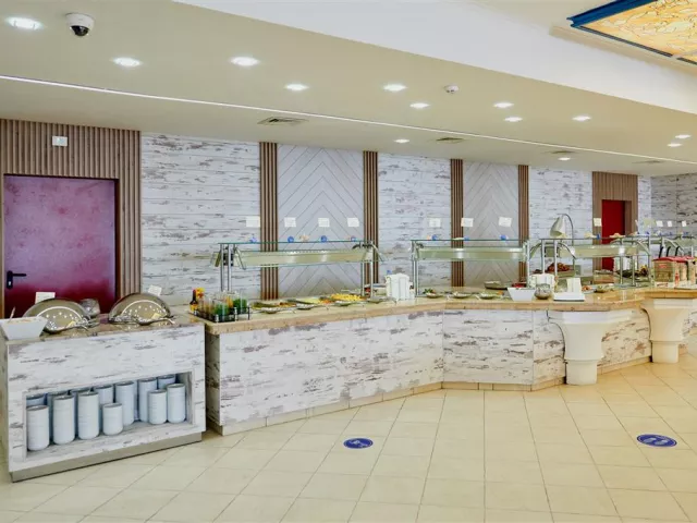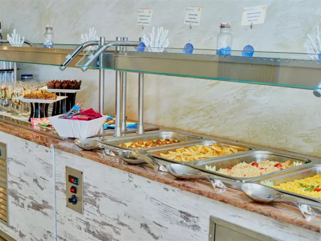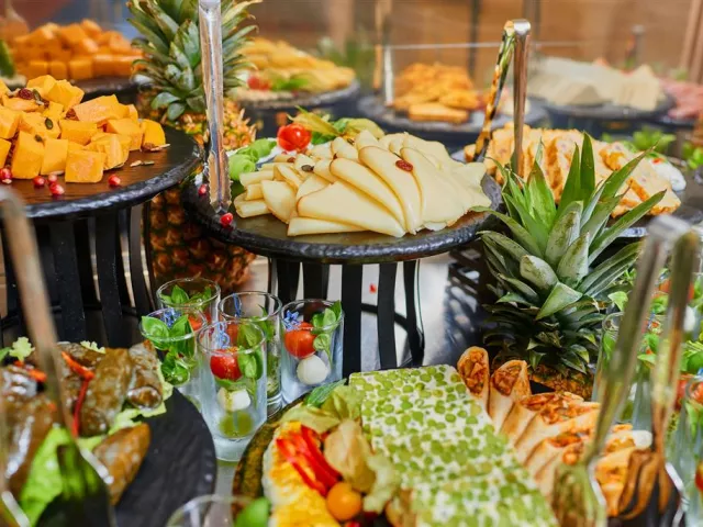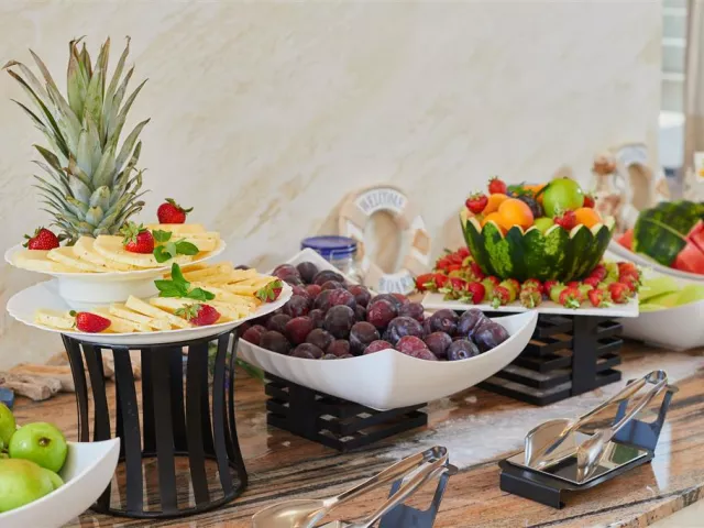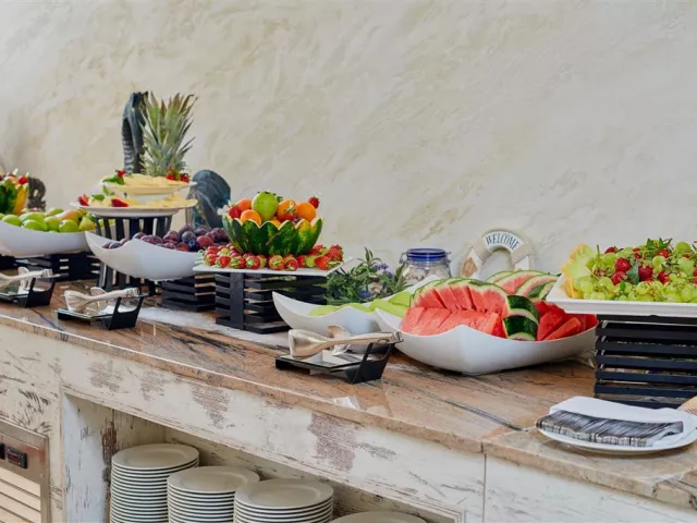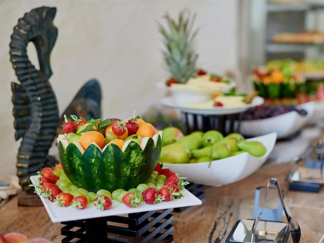 Služba all inclusive zahŕňa raňajky, neskoré raňajky, obedy a večere formou bufetu, ako aj rôzne občerstvenia počas dňa a široký výber miestnych nápojov. Hostia majú tiež možnosť využiť á la carte reštauráciu Bendita raz za pobyt zadarmo v izbách Comfort.