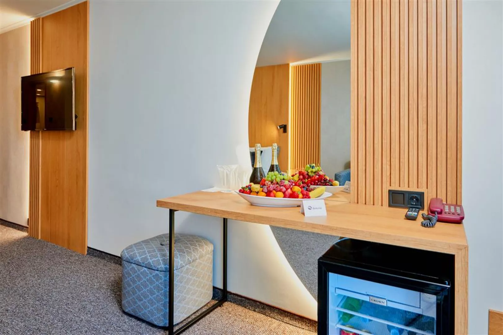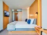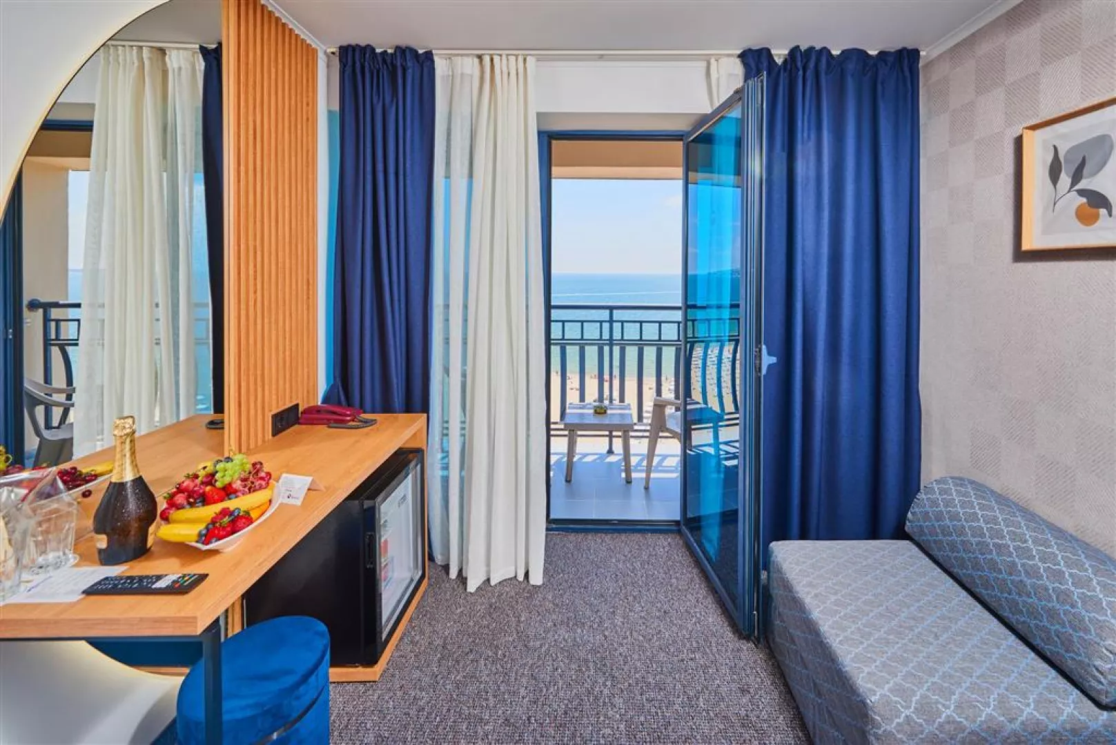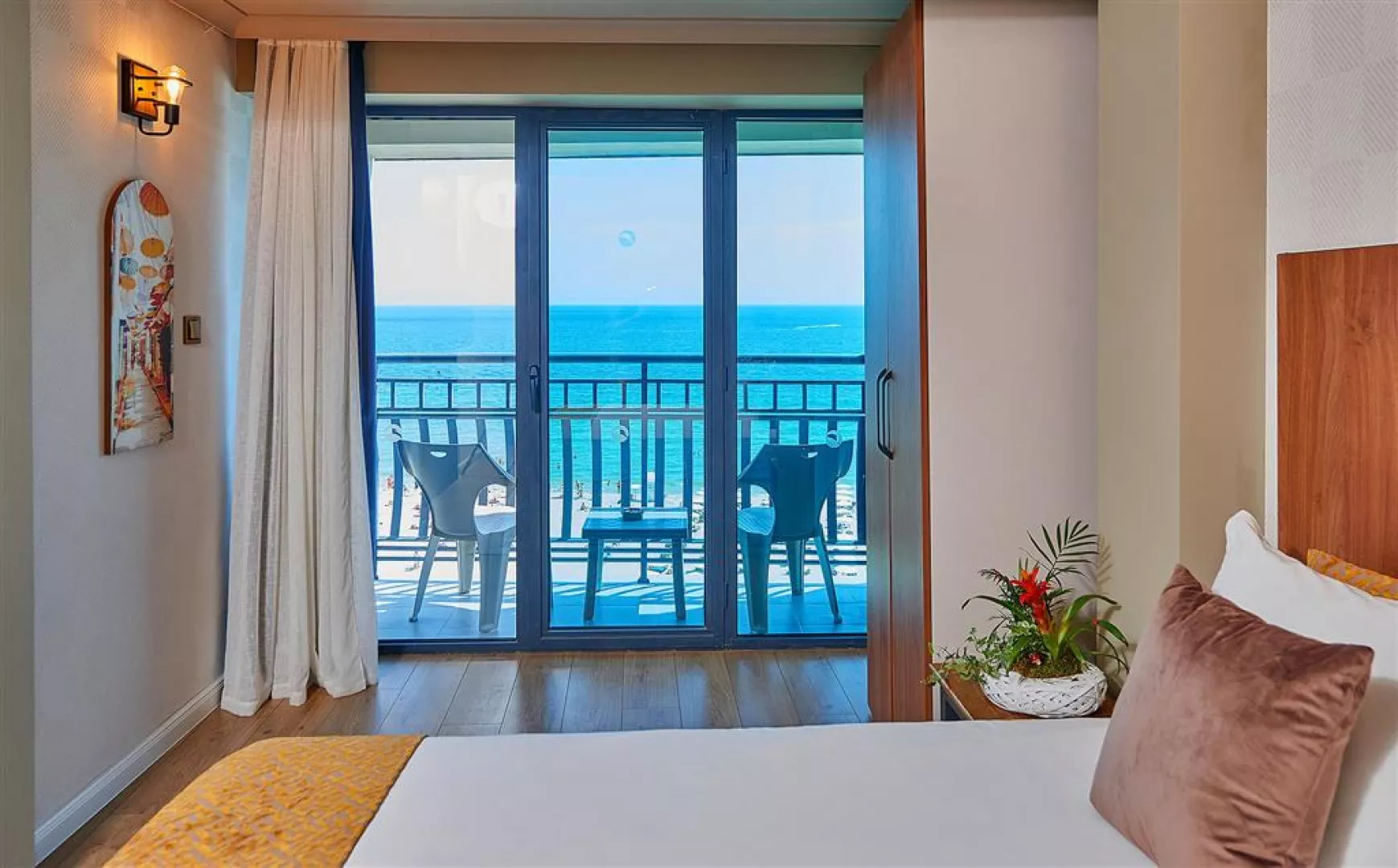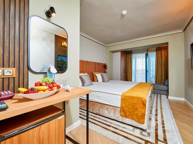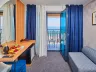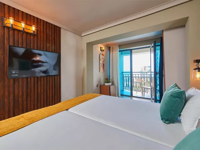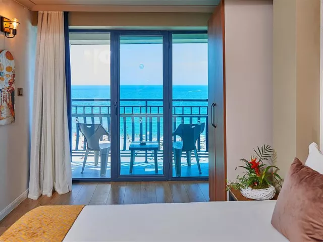 Hotel ponúka celkovo 270 izieb, ktoré sú klimatizované a vybavené Wi-Fi, LCD TV, minibarom a balkónom. K dispozícii sú rôzne typy izieb, vrátane standardných izieb s bočným výhľadom na more a komfortnejších izieb na vyšších poschodiach.