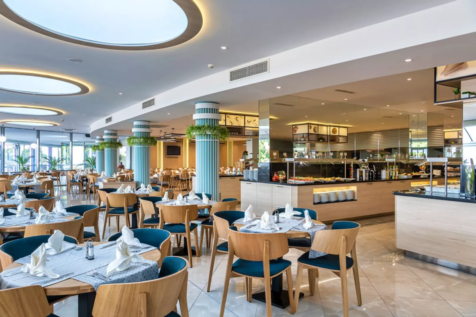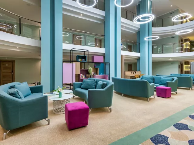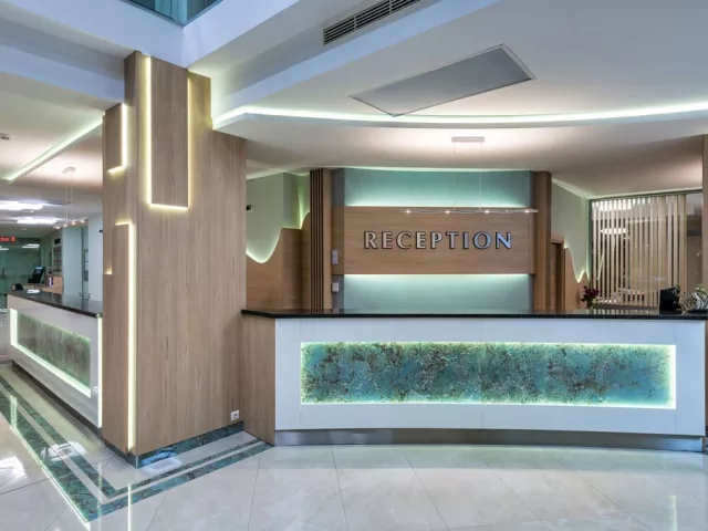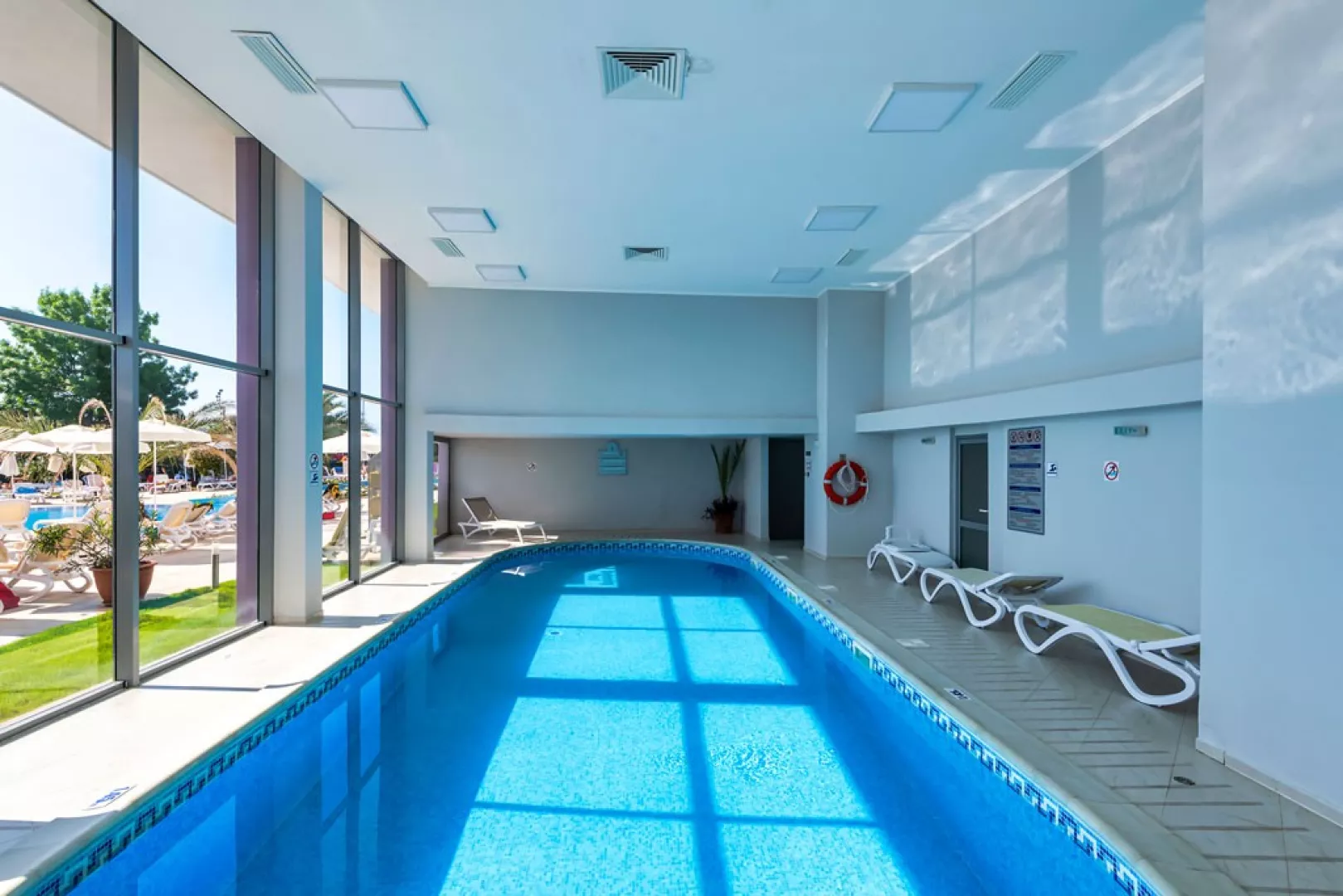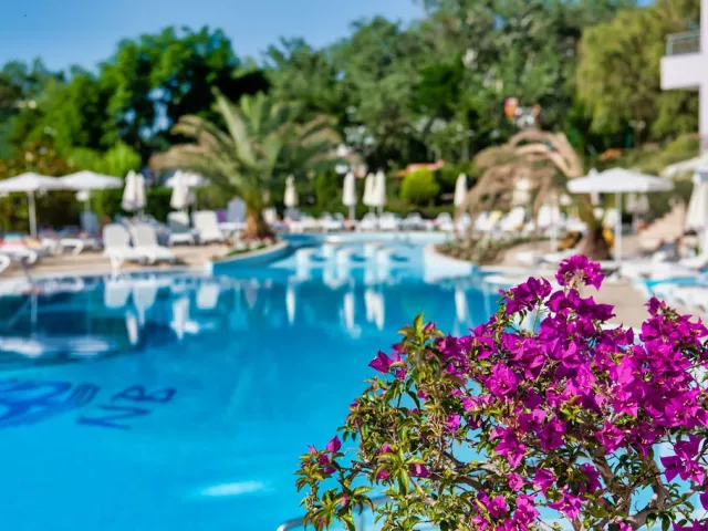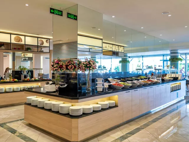 Vstupná hala s recepciou, zmenáreň, výťahy, reštaurácia, reštaurácia a la carte, lobby bar (nie je súčasťou all inclusive), obchod so suvenírmi, minimarket, kaderníctvo, salón krásy, vnútorný bazén. V záhrade bazén s jacuzzi, terasa s lehátkami a slnečníkmi zdarma, osušky za kauciu, bar pri bazéne.
