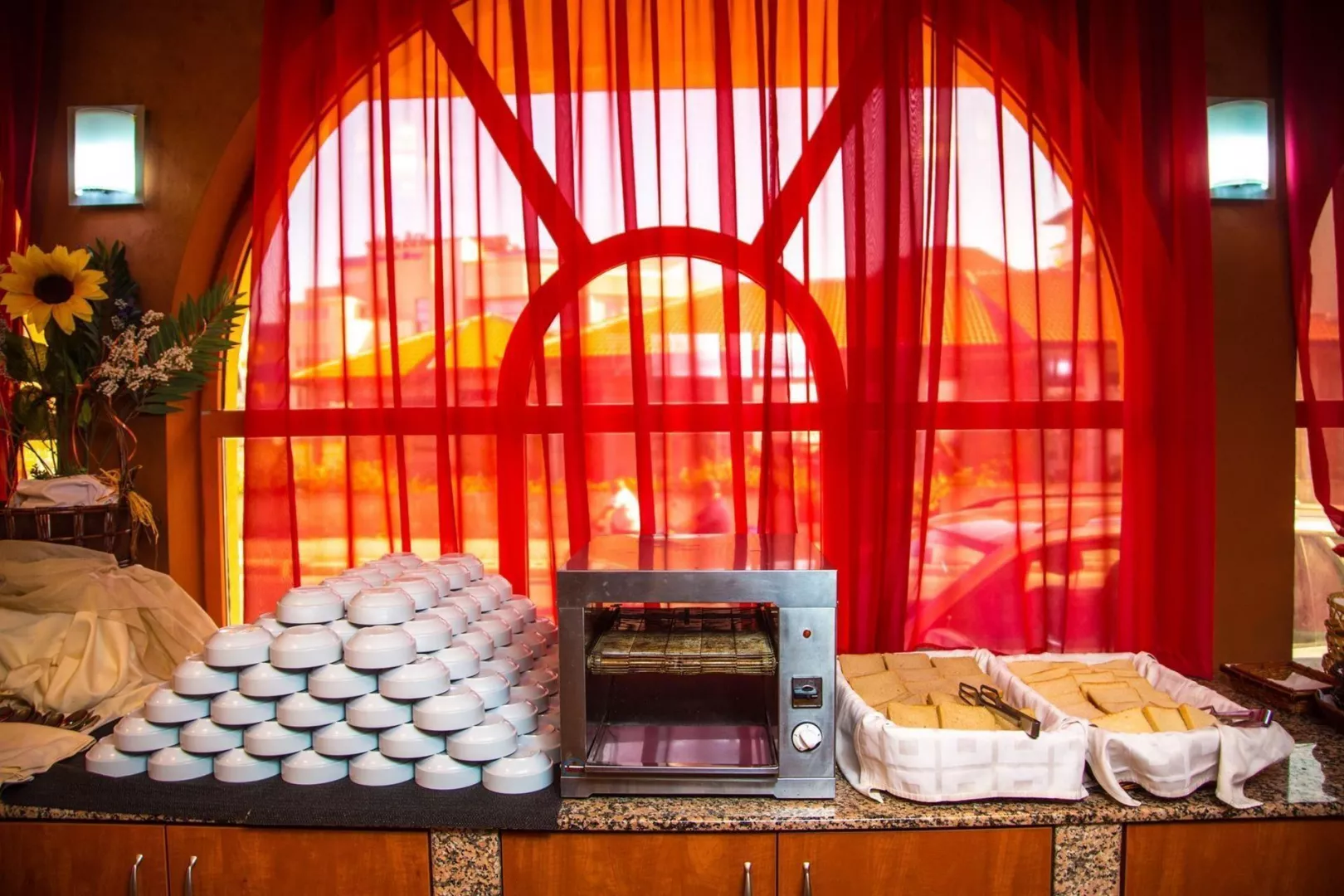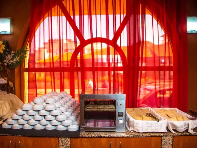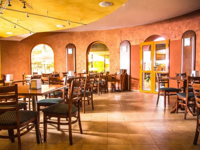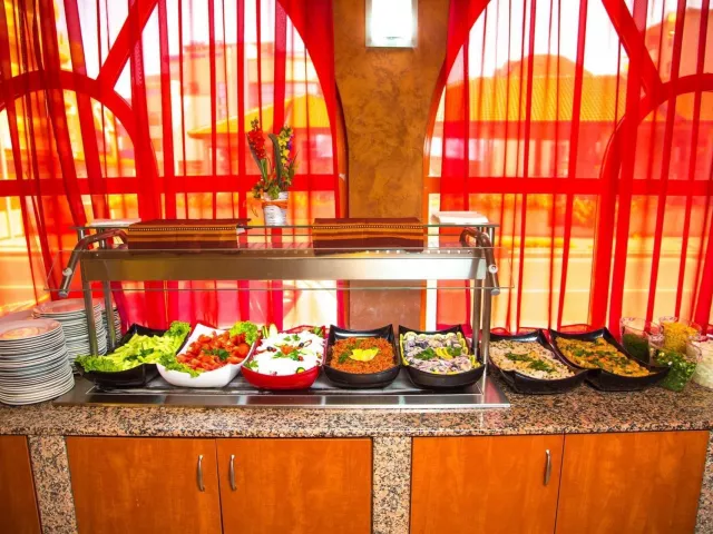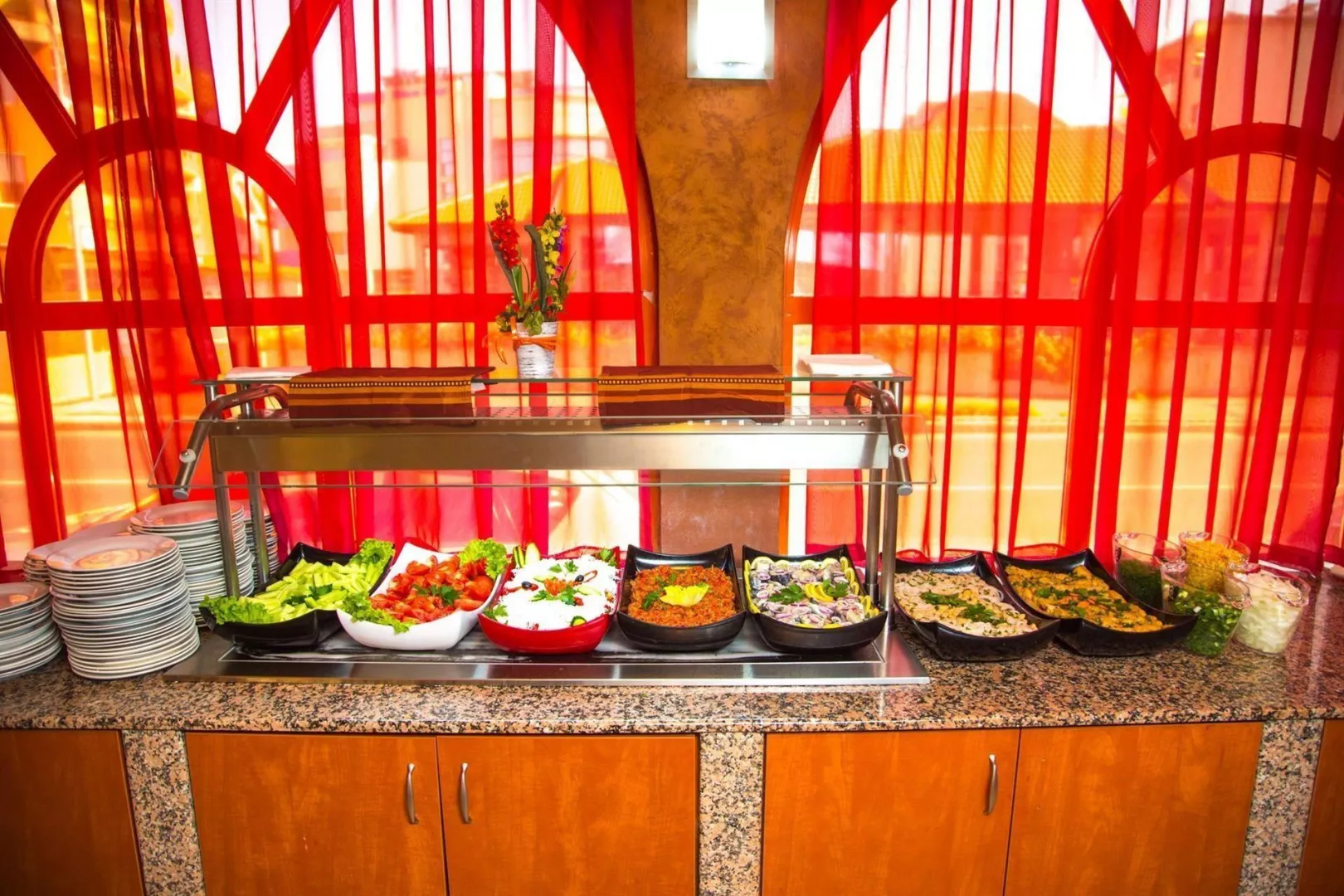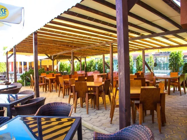 Oba hotely ponúkajú stravovanie formou all inclusive. V Complex Sunrise sú raňajky podávané formou bufetu od 7:30 do 10:00, obedy od 12:30 do 14:00 a večere od 18:00 do 21:00, vrátane čapovaných nealkoholických a alkoholických nápojov. Bar pri bazéne ponúka nápoje od 9:00 do 18:00. Systém all inclusive funguje do 22:30. Hotel Sunrise ponúka podobnú možnosť stravovania, pričom špecifické časy nie sú uvedené.