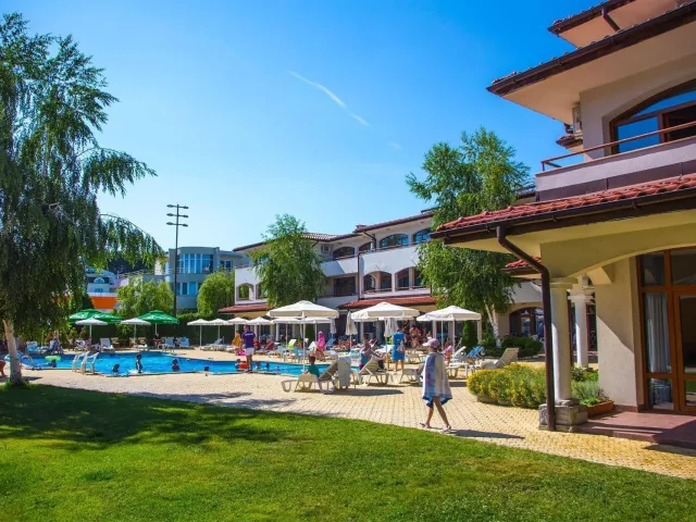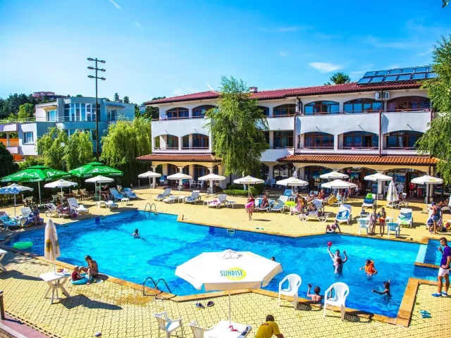 Hotel Complex Sunrise sa nachádza 35 km od medzinárodného letiska v Burgase, v severnej časti letoviska Slnečné pobrežie, 2 km od centra letoviska. Hotel Sunrise na Zlatých pieskoch leží v malebnej hornej časti obklopený stromami a zeleňou, pričom vzdialenosť od pláže je asi 350 metrov, kam je zabezpečená bezplatná kyvadlová doprava.