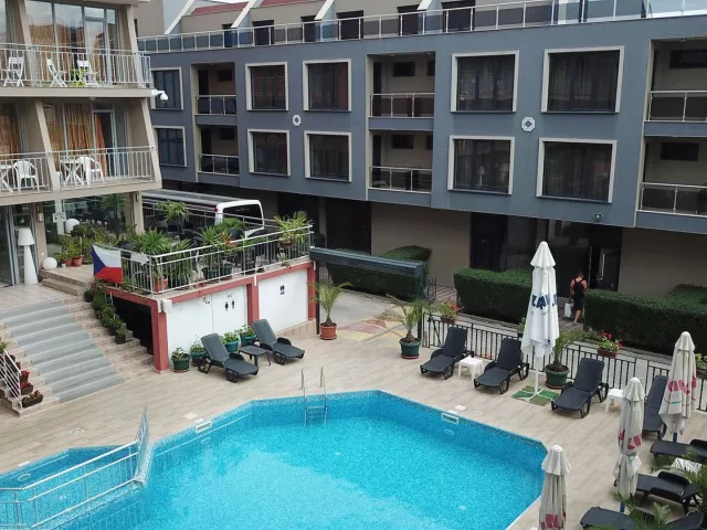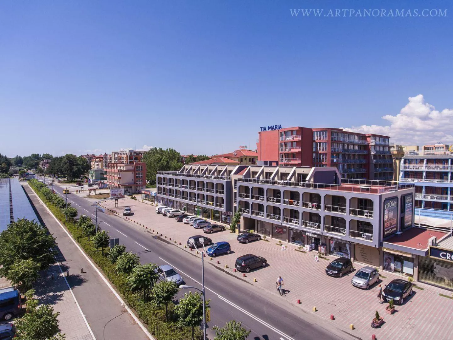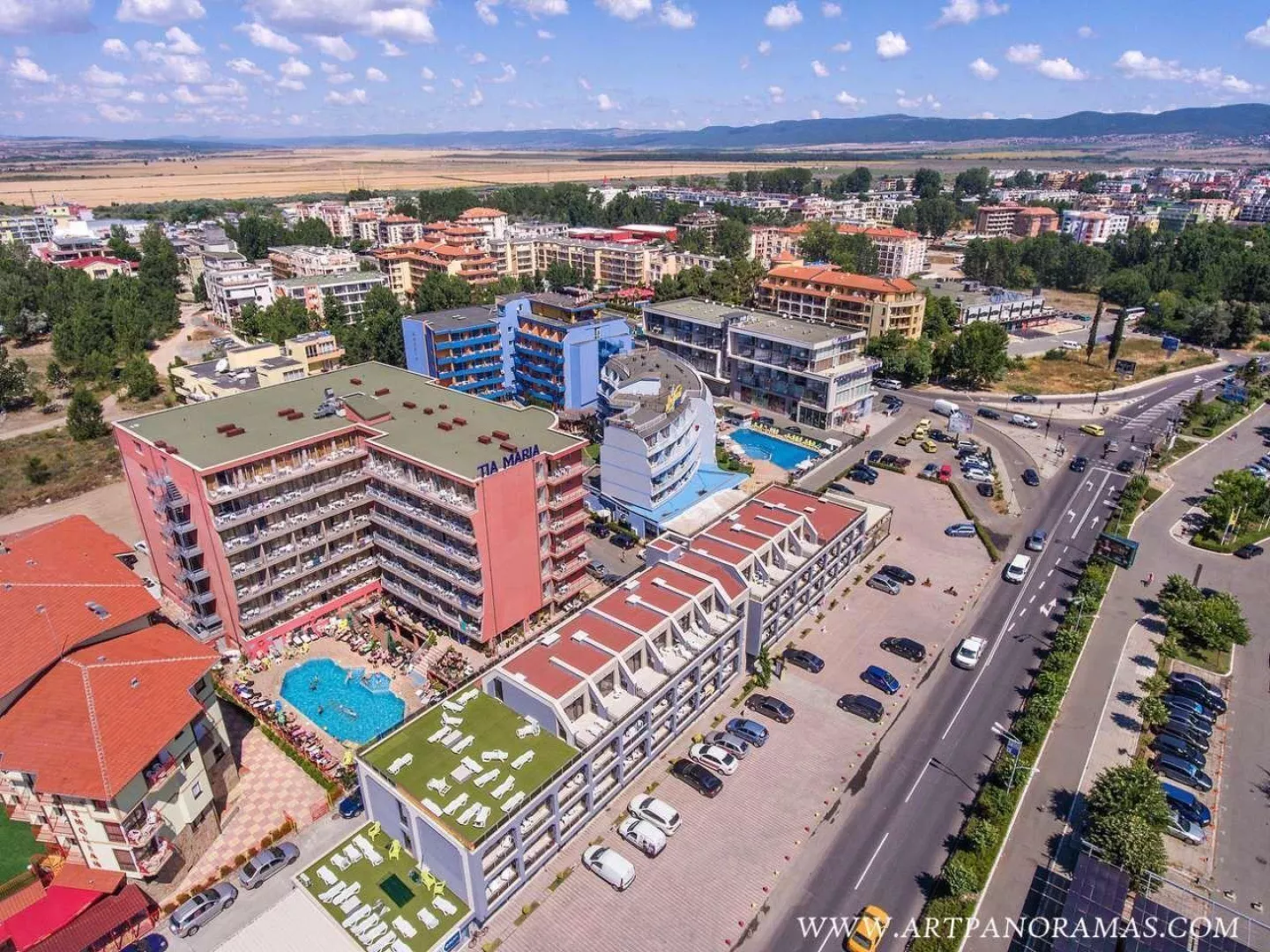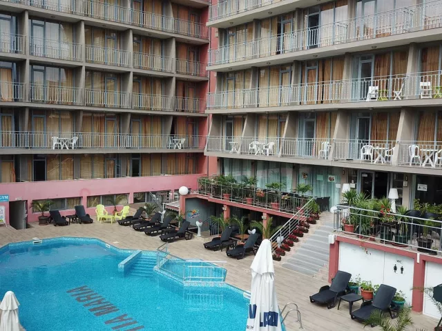 Hotel Tia Maria sa nachádza v južnej časti letoviska Slnečné pobrežie, približne 450 m od piesočnatej pláže. Blízkosť centra poskytuje dobrú dostupnosť k atraktívnym miestam na pobreží. Autobusová zastávka je len 100 m od hotela, čo uľahčuje cestovanie, a supermarket sa nachádza v tesnej blízkosti. Medzinárodné letisko Burgas je vzdialené asi 40 km.