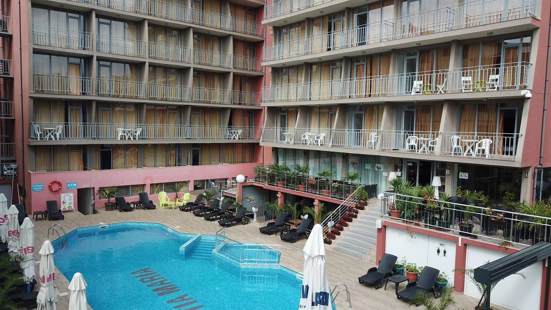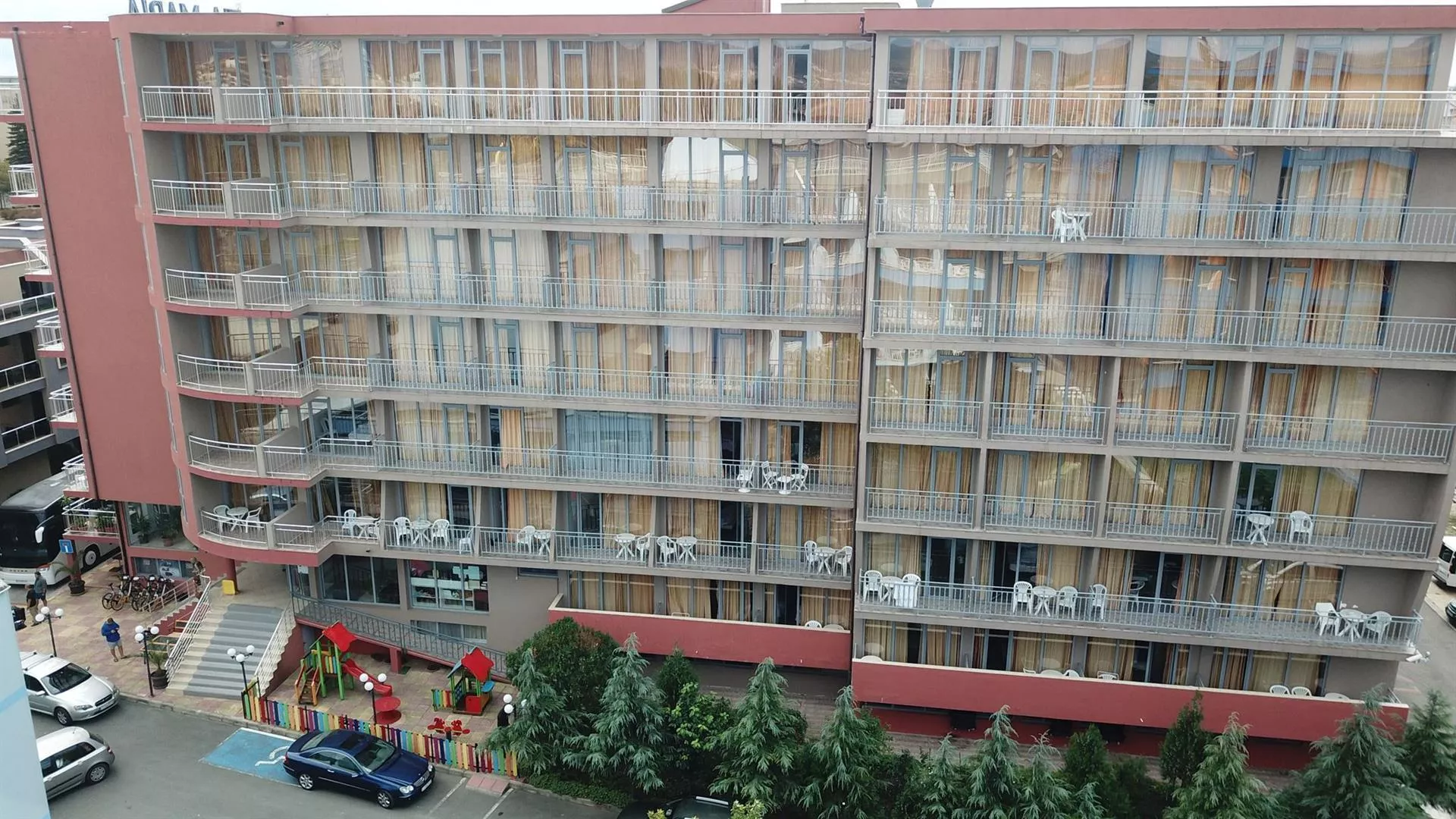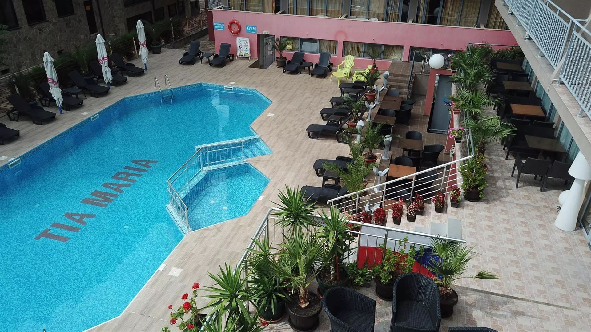 Hotel Tia Maria sa nachádza v južnej časti letoviska Slnečné pobrežie, približne 450 m od piesočnatej pláže. Blízkosť centra poskytuje dobrú dostupnosť k atraktívnym miestam na pobreží. Autobusová zastávka je len 100 m od hotela, čo uľahčuje cestovanie, a supermarket sa nachádza v tesnej blízkosti. Medzinárodné letisko Burgas je vzdialené asi 40 km.