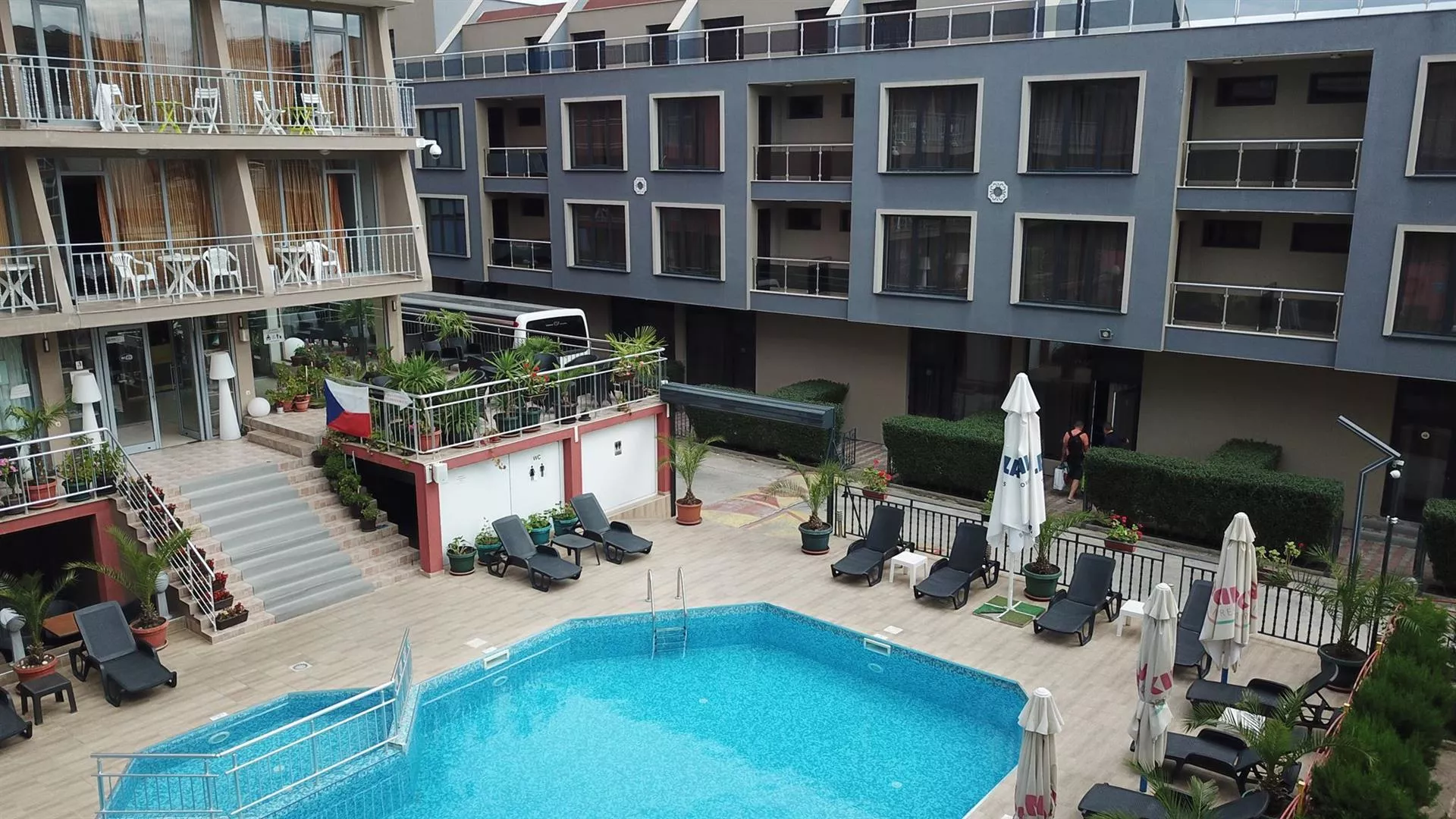 Dvojlôžkové izby sú vybavené centrálnou klimatizáciou, telefónom, TV/SAT, kúpeľňou s WC (sušič vlasov), mini chladničkou, a balkónom alebo terasou. K dispozícii sú aj priestrannejšie rodinné izby a apartmány s obývacou izbou.