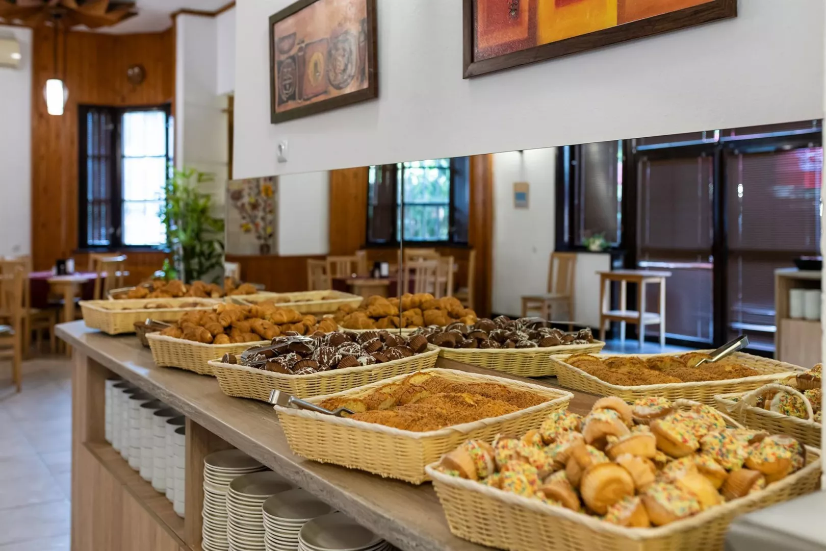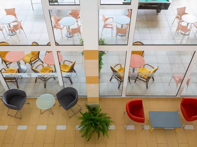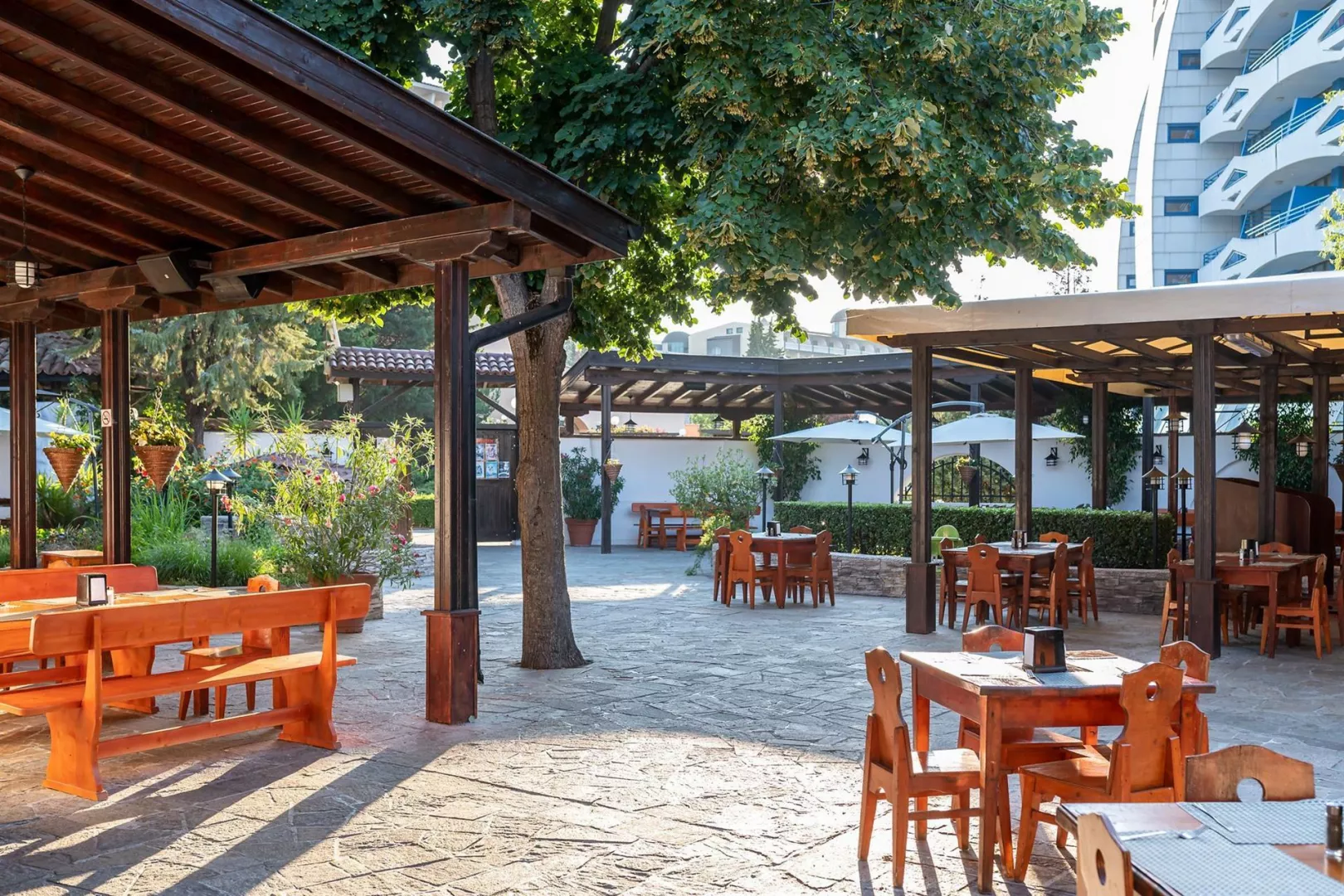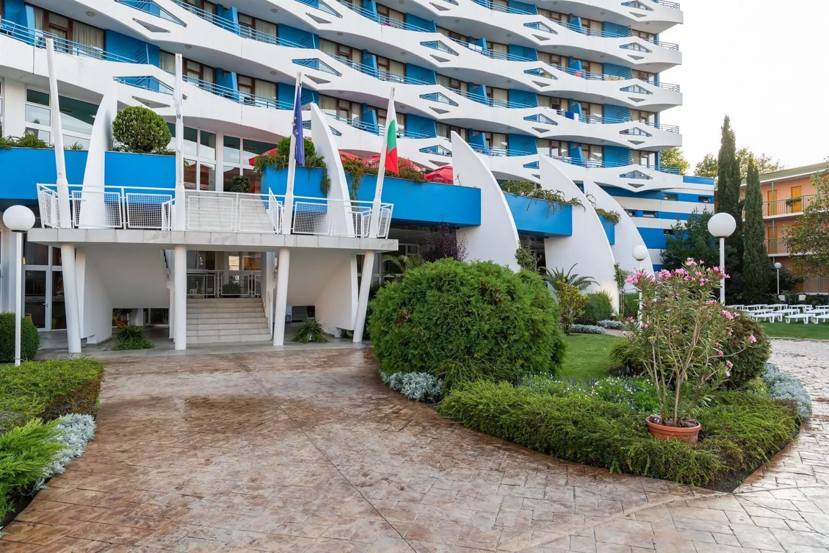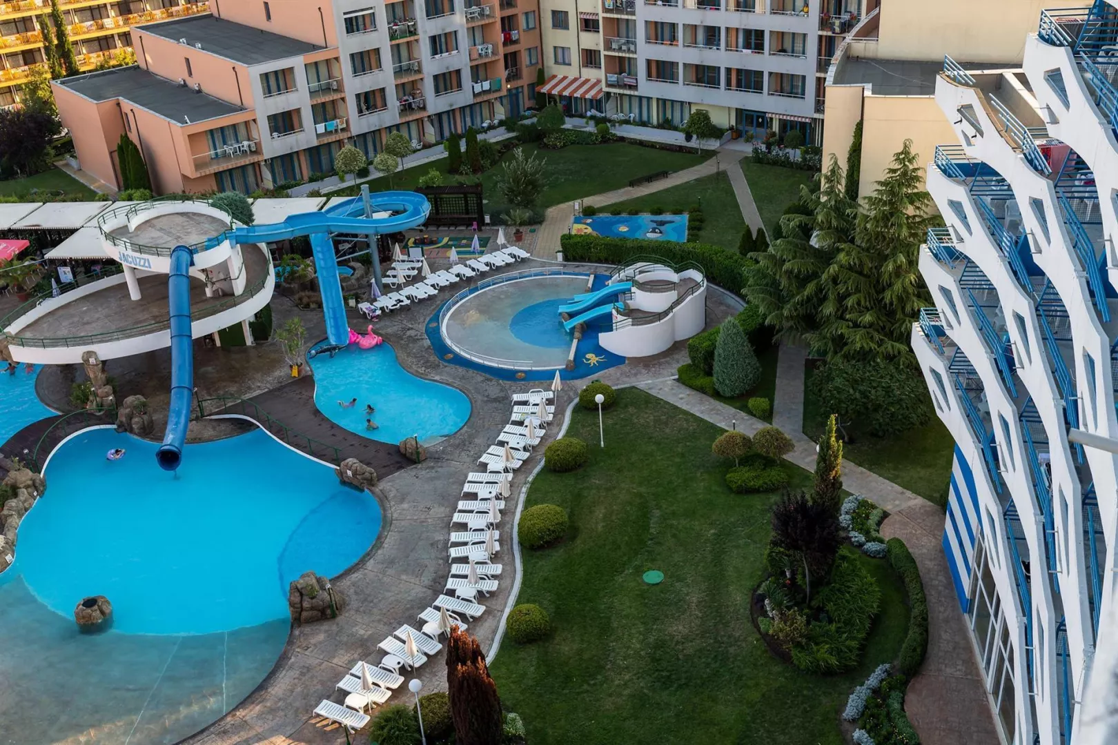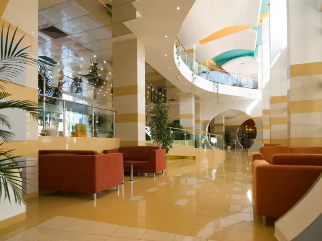 Hotel má jedinečnú deväťposchodovú budovu, pozostávajúcu zo 169 izieb, ktoré sú vybavené klimatizáciou, televízorom a balkónom. K dispozícii sú aj modernizované izby Comfort. V hoteli nájdete recepciu s trezorom, bar pri bazéne, lobby bar, reštauráciu s vonkajšou terasou a zmenáreň. Vonku sa nachádza bazén s tobogánmi, vírivkou a detským bazénom. Pre pohodlie sú pri bazéne bezplatne k dispozícii lehátka a slnečníky.
