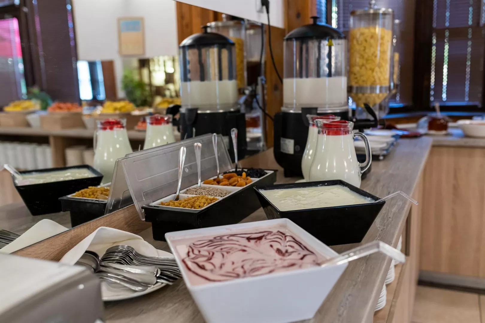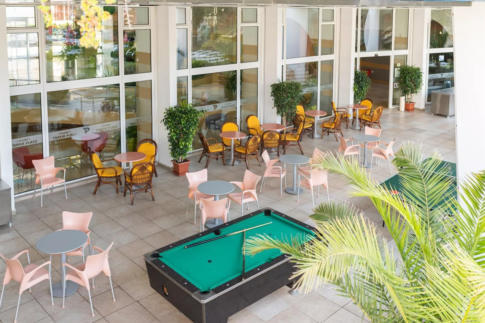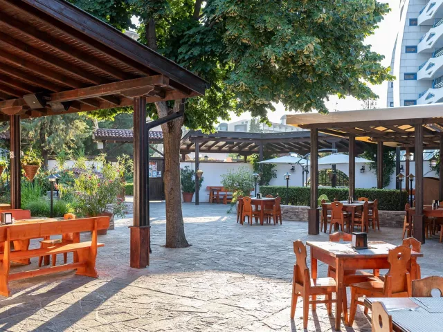 Trakia Plaza ponúka all inclusive stravovanie, ktoré zahŕňa raňajky, obedy a večere formou bufetu. Počas dňa sú dostupné ľahké občerstvenia, zmrzlina a neobmedzené množstvo roztokov nealkoholických a miestnych alkoholických nápojov. Časy podávania jedál sa môžu zmeniť.