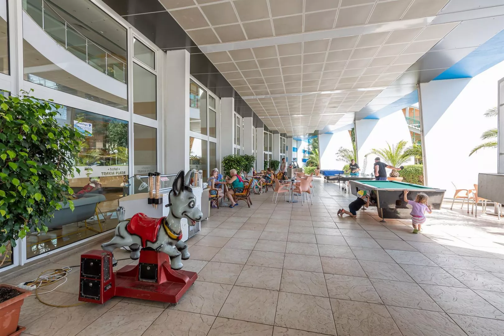 Hotel Trakia Plaza sa nachádza približne 600 m od centra obľúbeného letoviska Slnečné pobrežie a len cca 250 m od krásnej piesočnatej pláže s pozvoľným vstupom do mora. V okolí hotela sú početné obchody, reštaurácie a bary, ako aj promenáda lemujúca pobrežie. Letisko Burgas je vzdialené 28 km.