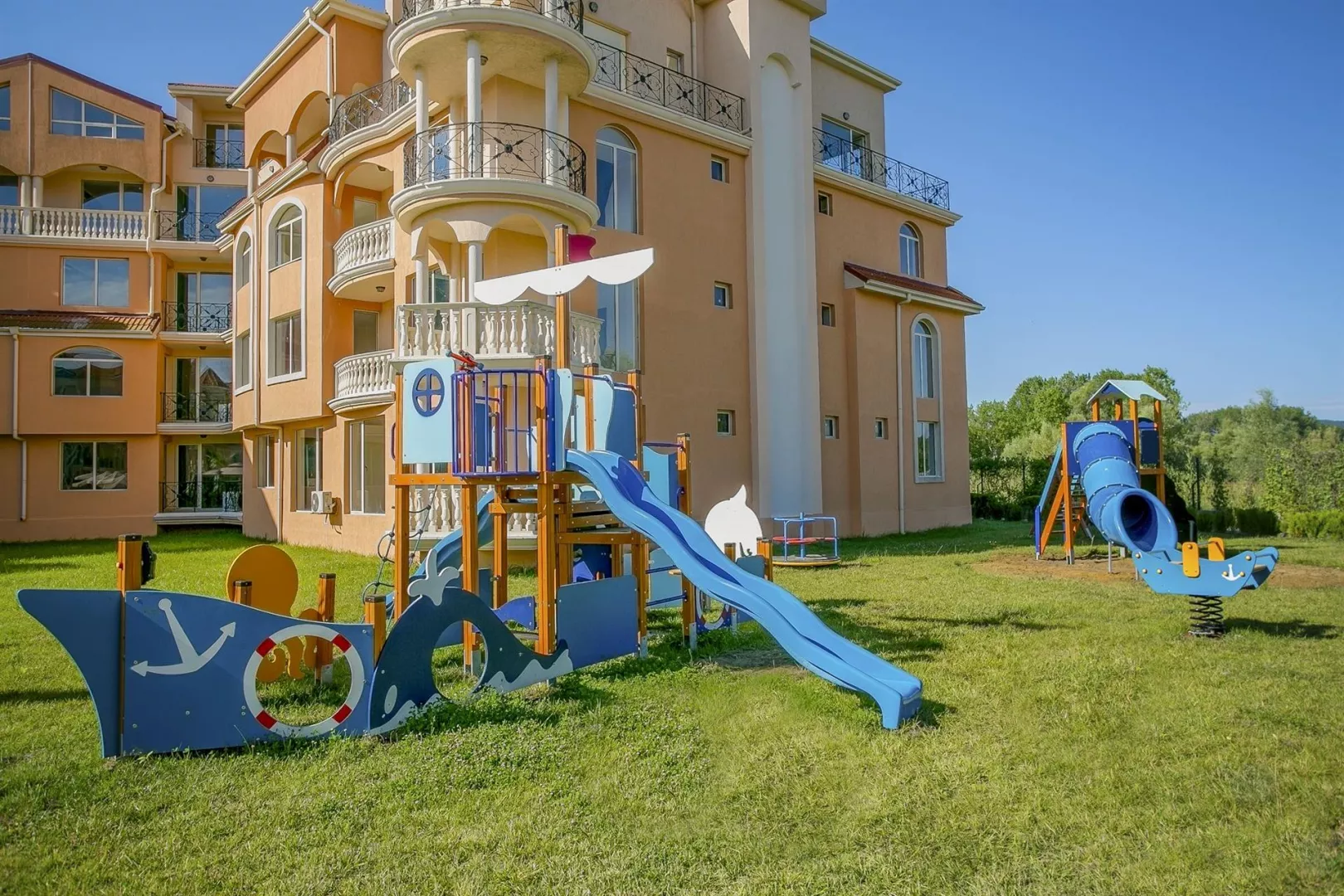 Hotel zabezpečuje detské ihrisko, detský bazén, animačný program, vysoké stoličky v reštaurácii a detskú postieľku (za poplatok).