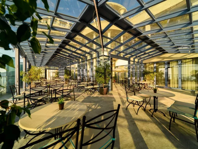 Hotelový komplex ponúka moderné zariadenie vrátane vstupnej haly, recepcie, výťahov, lobby baru a hlavnej reštaurácie s terasou. Návštevníci môžu využiť tri bazény, vrátane vnútorného bazéna s minerálnou vodou a detského bazénu so šmykľavkami. K dispozícii je aj konferenčná miestnosť, Wi-Fi zdarma, obchody a trezor na recepcii.