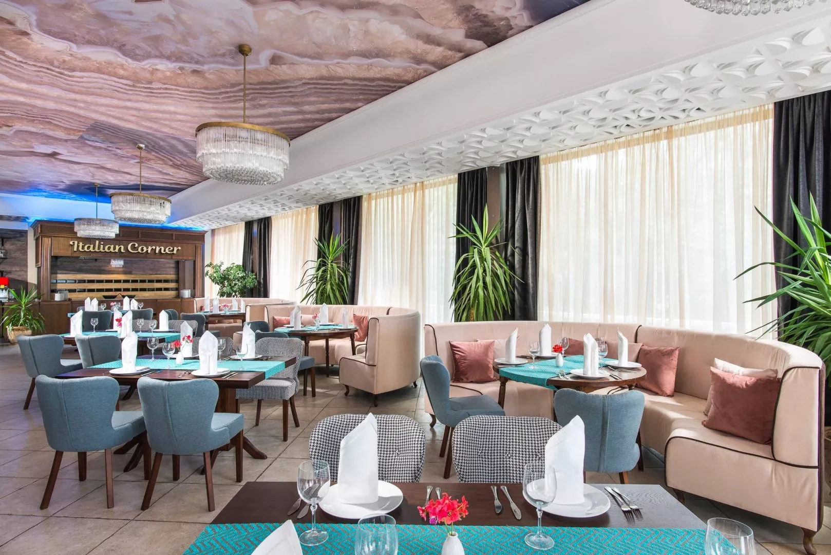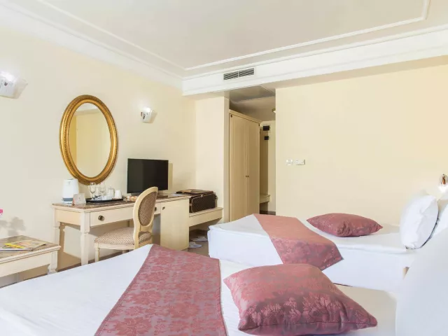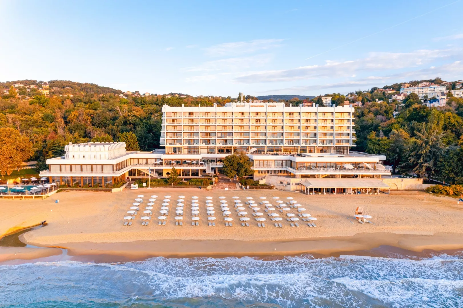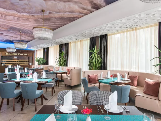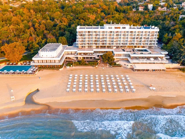 Hotel sa nachádza na okraji pokojného letoviska Svätý Konštantín a Helena, v obklopení zeleňou, len 1 km od centra s nákupnými možnosťami. Vzdialenosť od letiska vo Varne je 20 km.