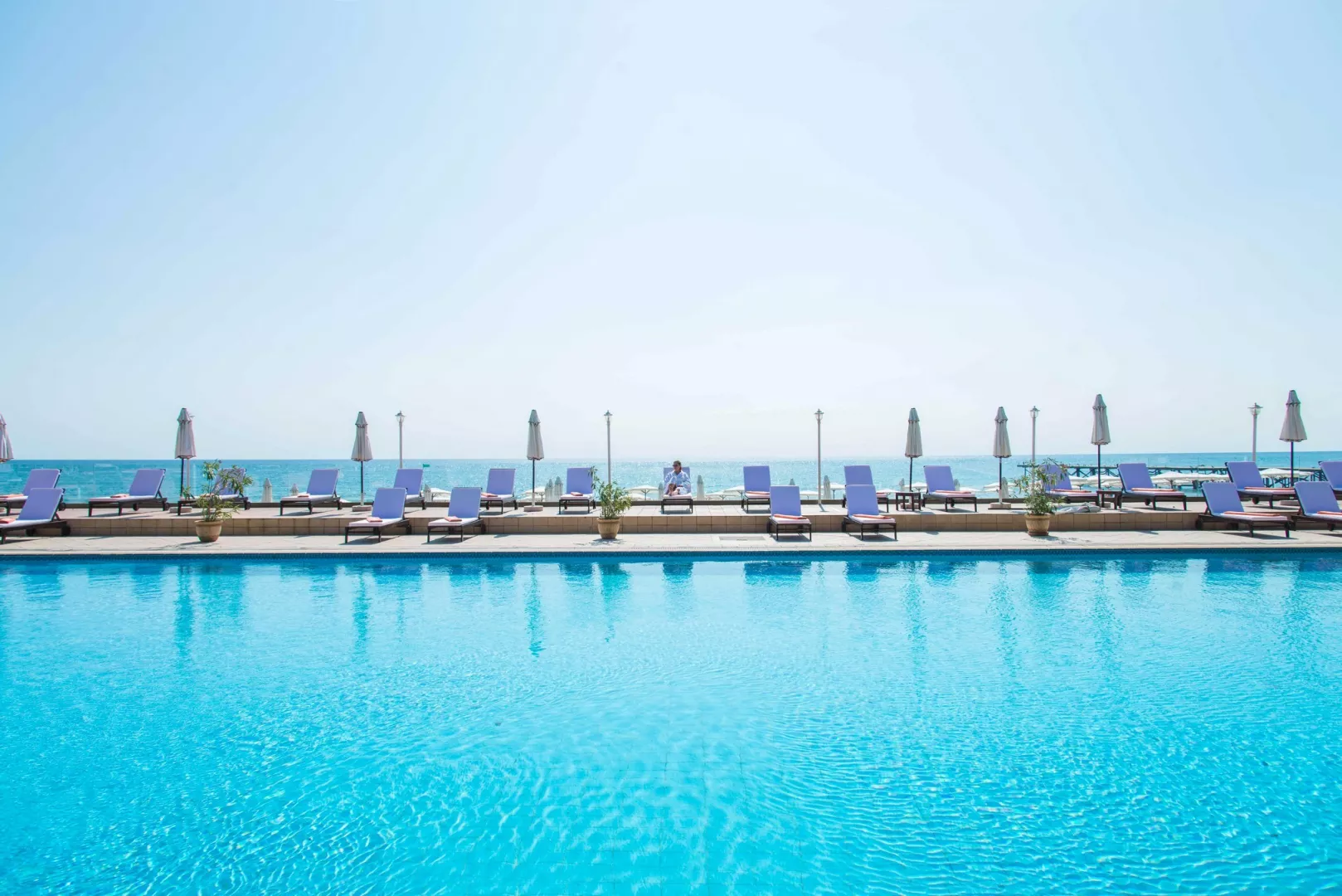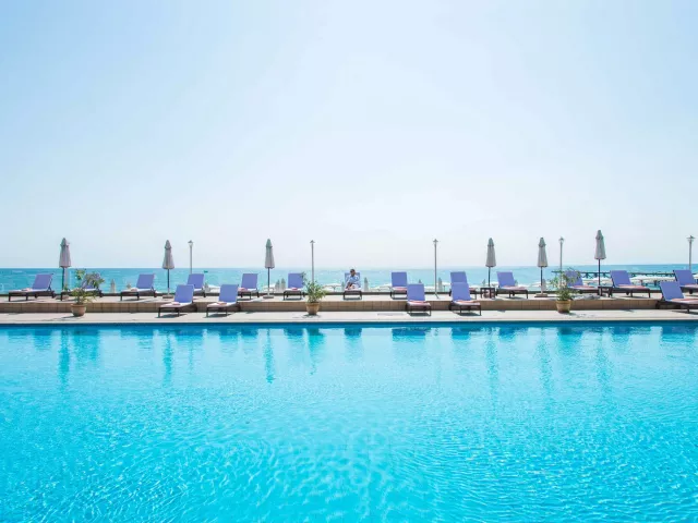 Hotel sa nachádza priamo na piesočnatej pláži so pozvoľným vstupom do mora. K dispozícii sú slnečníky a ležadlá zdarma, osušky sú za vratnú kauciu.