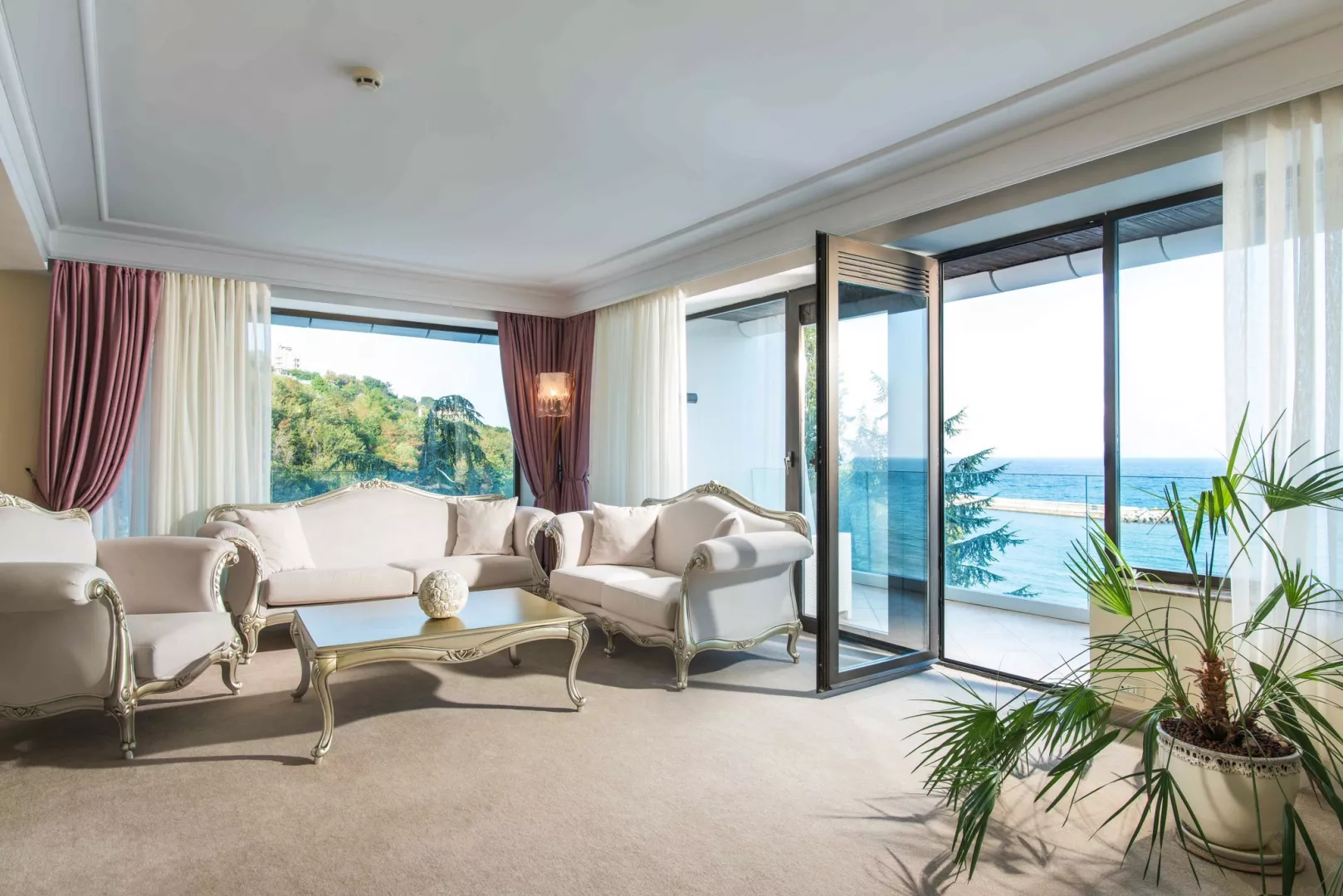 Dvojlôžková izba, Výhľad park kúpeľňa/WC (sušič vlasov) centrálna klimatizácia TV/sat. telefón minibar (za poplatok) Wi-Fi (zadarmo) set na prípravu kávy a čaju balkón Ostatné typy izieb (pokiaľ nie je uvedené inak, majú izby vyššie uvedené vybavenie) Dvojlôžková izba, Výhľad na more Dvojlôžková izba, Deluxe, Výhľad park: priestrannejšia, navyše obývacia časť s pohovkou Dvojlôžková izba, Deluxe, Výhľad na more: priestrannejšia, navyše obývacia časť s pohovkou, výhľad na more