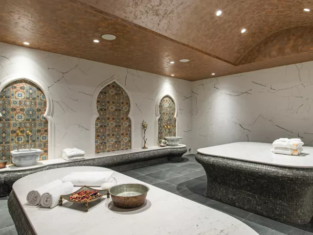 Hotel ponúka vstupnú halu s recepciou, hlavnú reštauráciu, à la carte reštauráciu, lobby bar, bar pri bazéne, bar na pláži a pizza bar (za poplatok). K dispozícii je aj reštaurácia na pláži (za poplatok), vonkajší a vnútorný bazén, trezor na recepcii (za poplatok), SPA centrum, kaderníctvo, beauty salón a konferenčný priestor.