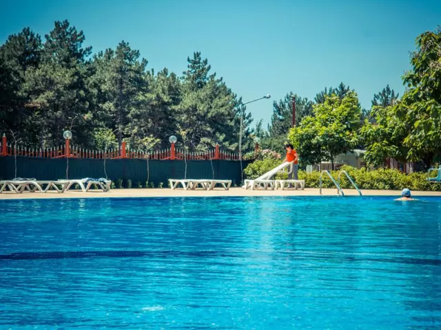 SLUŽBY: bazén so slnečníkmi a ležadlami • recepcia • reštaurácia pri bazéne • wifi • vonkajší tréningový areál • parkovanie • za poplatok: tenisové ihrisko • futbalové ihrisko • obchody • požičovňa áut • práčovňa