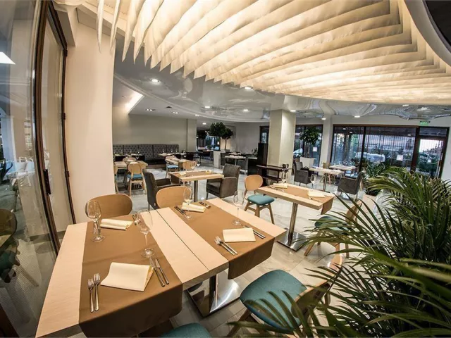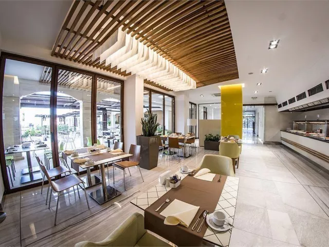 Hotel sa nachádza na prvom pobreží mestskej piesočnatej pláže, pričom slnečníky a ležadlá sú k dispozícii za poplatok.