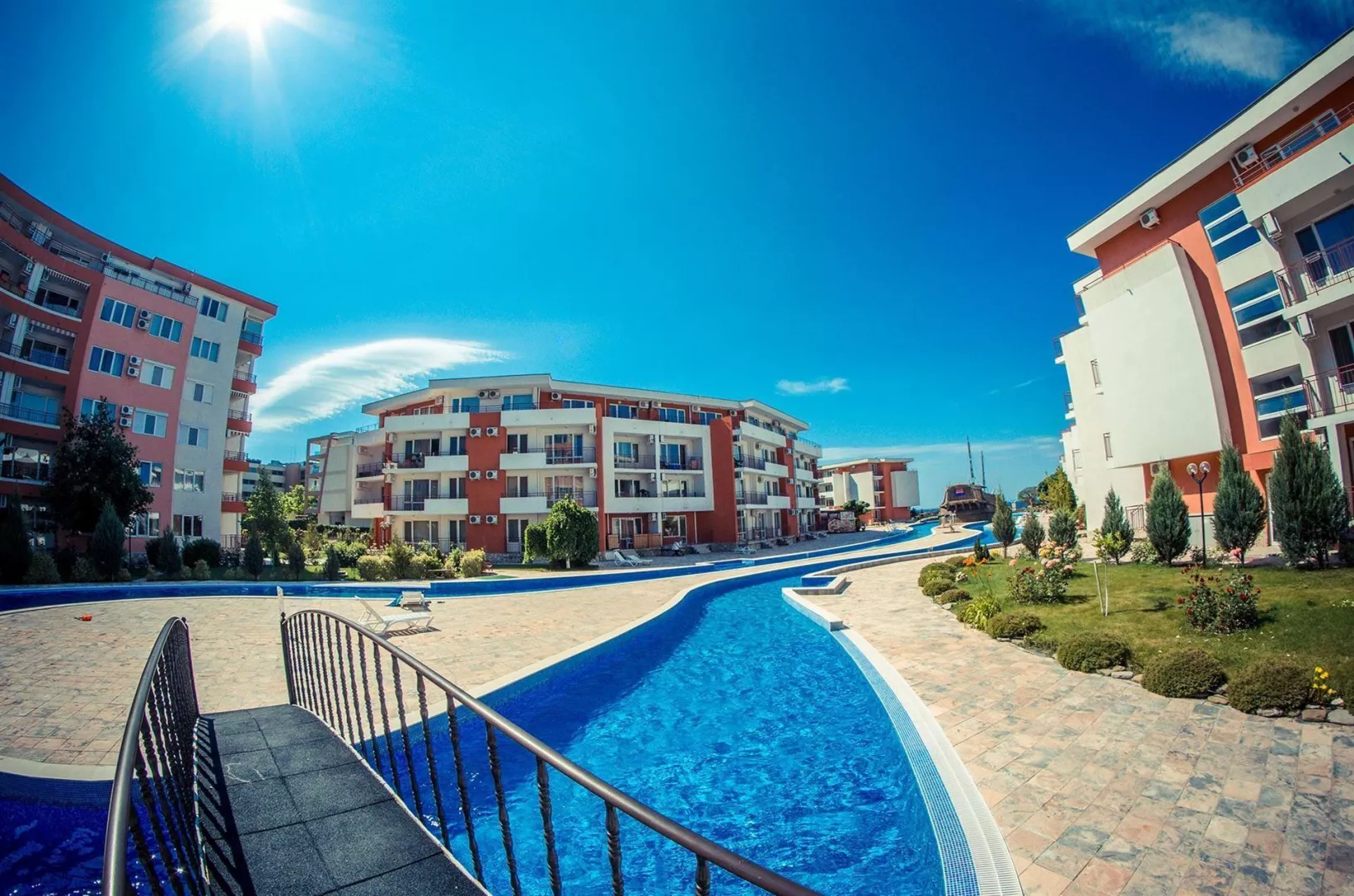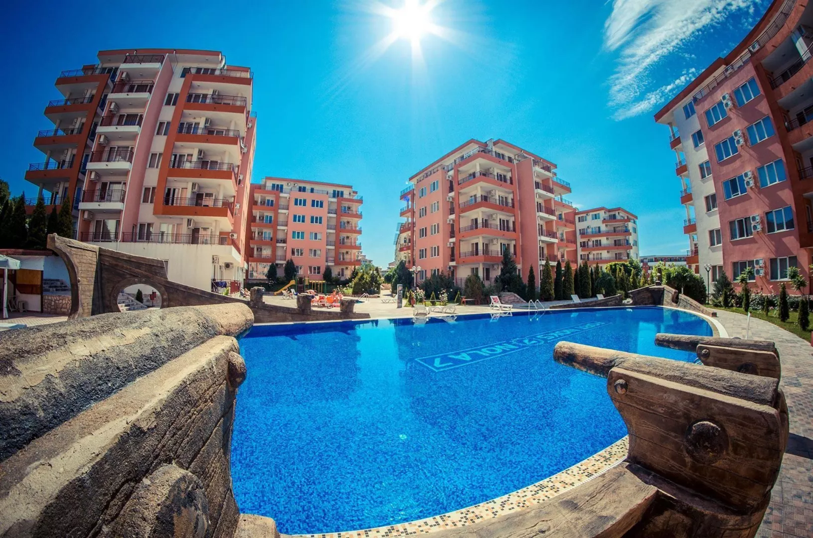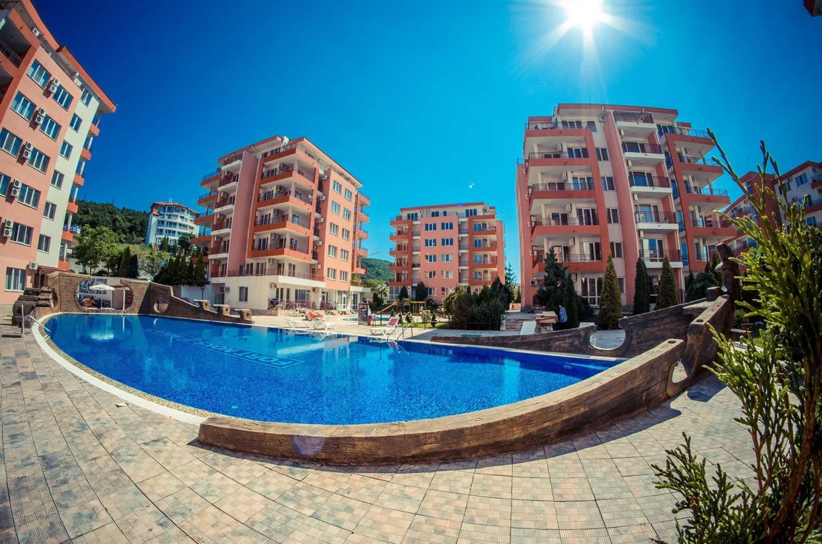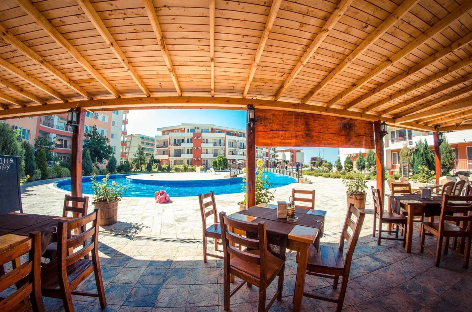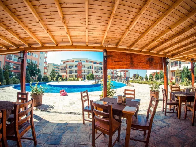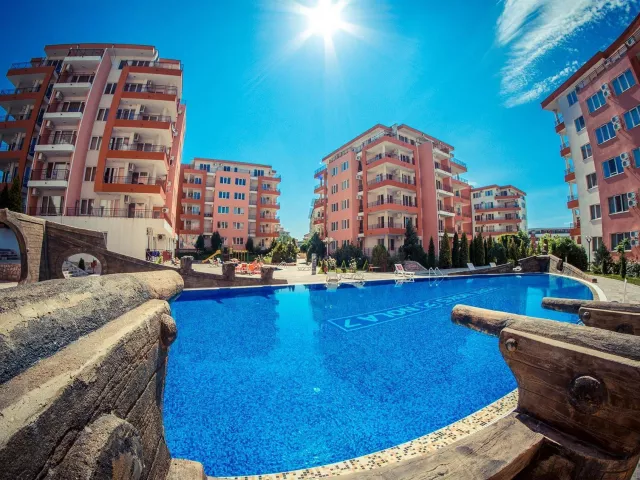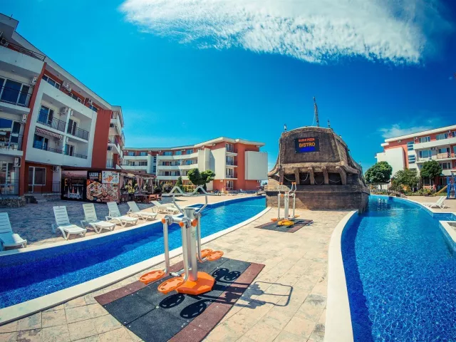 Hotel sa nachádza v centre pokojnej zátoky Robinson Bay, len 6 km od rezortu Slnečné pobrežie a 3 km od centra mesta St. Vlas. Letisko Burgas je vzdialené 45 km.
