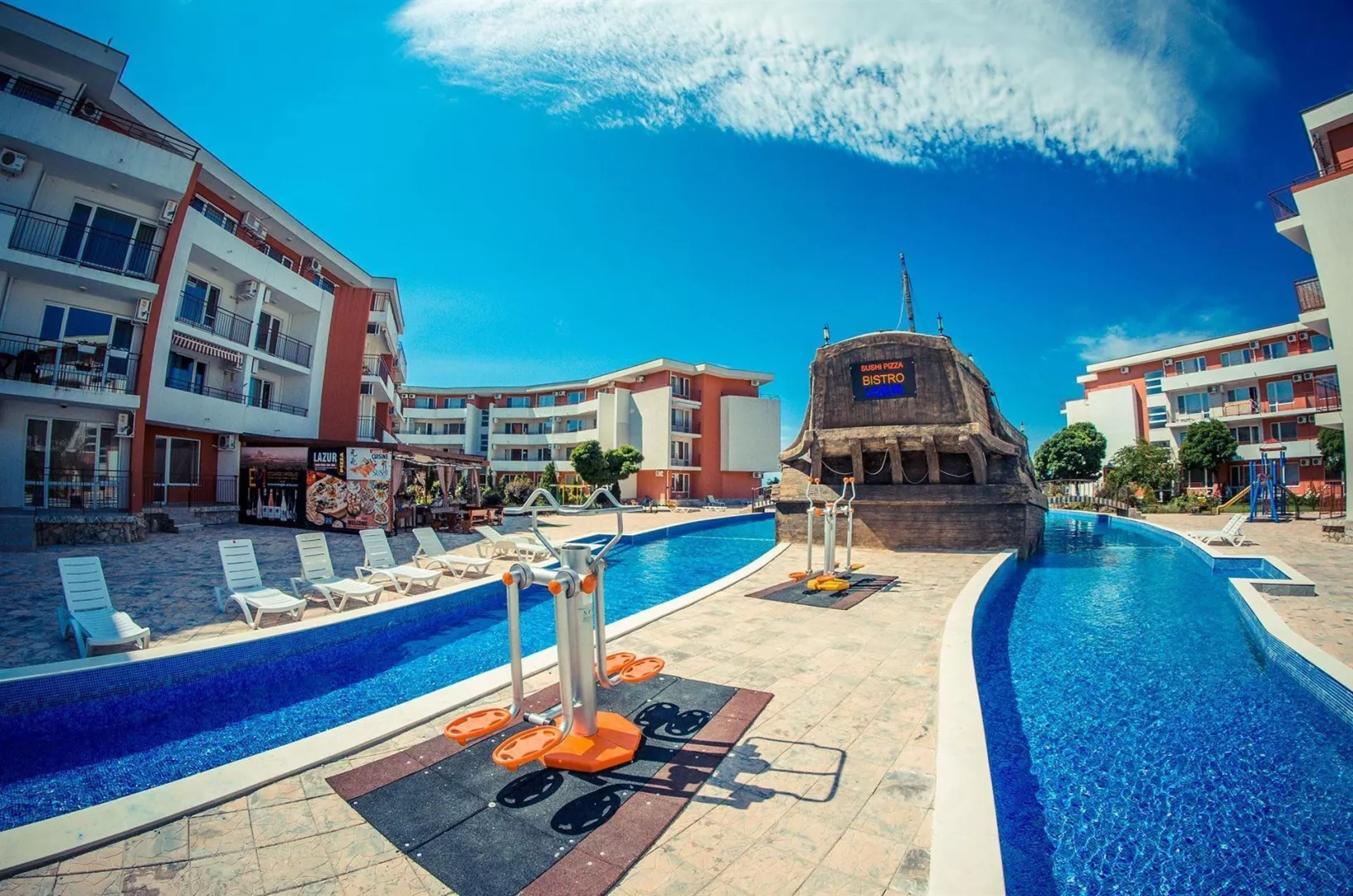 V hoteli sú k dispozícii 2 vonkajšie bazény, tobogán, 2 reštaurácie a bar. Pri registrácii sa účtuje vratná záloha vo výške 50 EUR/izba, ktorá bude vrátená, ak nedôjde k žiadnym škodám. Domáce zvieratá nie sú povolené.