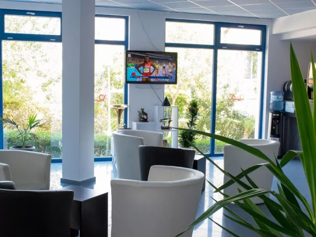 Hotel má vstupnú halu s recepciou, výťahy, lobby bar, reštauráciu a kaderníctvo. V záhrade sa nachádza bazén s barom pri bazéne a terasa so slnečníkmi a ležadlami bez poplatku. V hoteli je k dispozícii aj trezor na recepcii a zmenáreň.