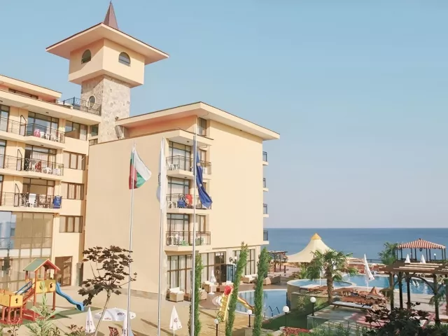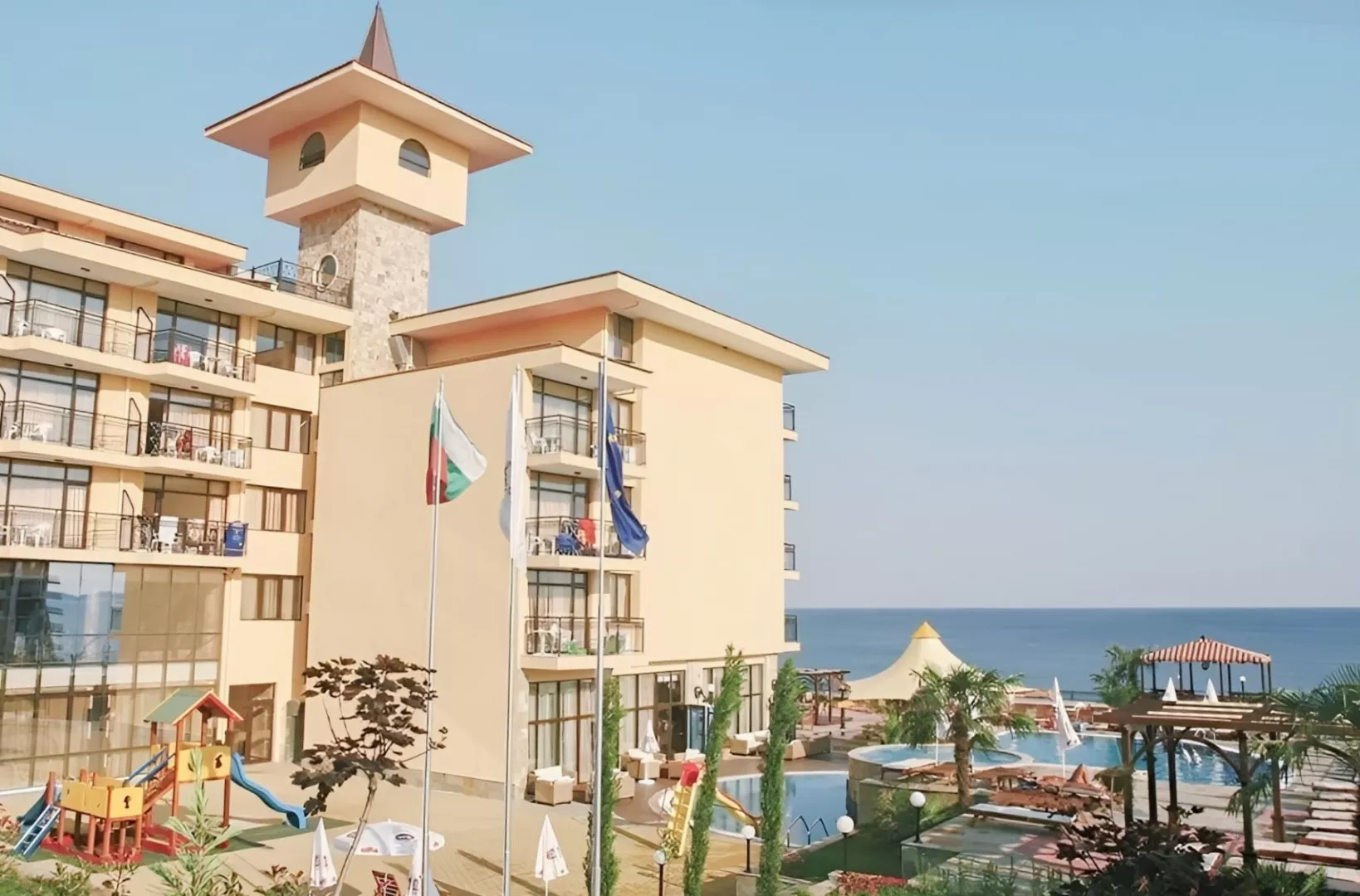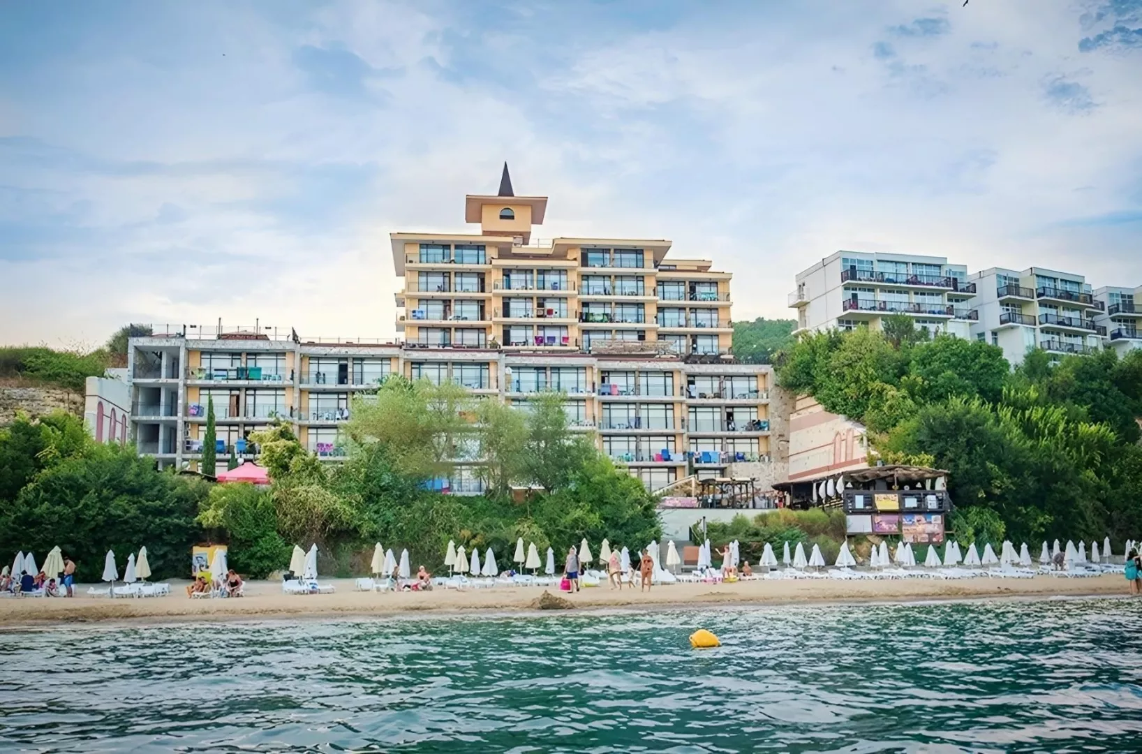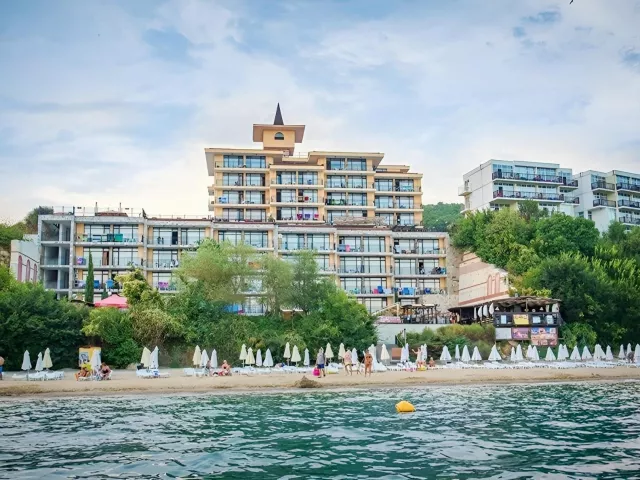 Hotel sa nachádza na miernom kopci priamo pri piesočnatej pláži s pozvoľným vstupom do mora. Centrum letoviska je vzdialené približne 3 km, zatiaľ čo medzinárodné letisko je vzdialené 40 km. Autobusová zastávka sa nachádza priamo pred hotelom, čo uľahčuje dopravu do okolitých oblastí, vrátane živého Slnečného pobrežia.