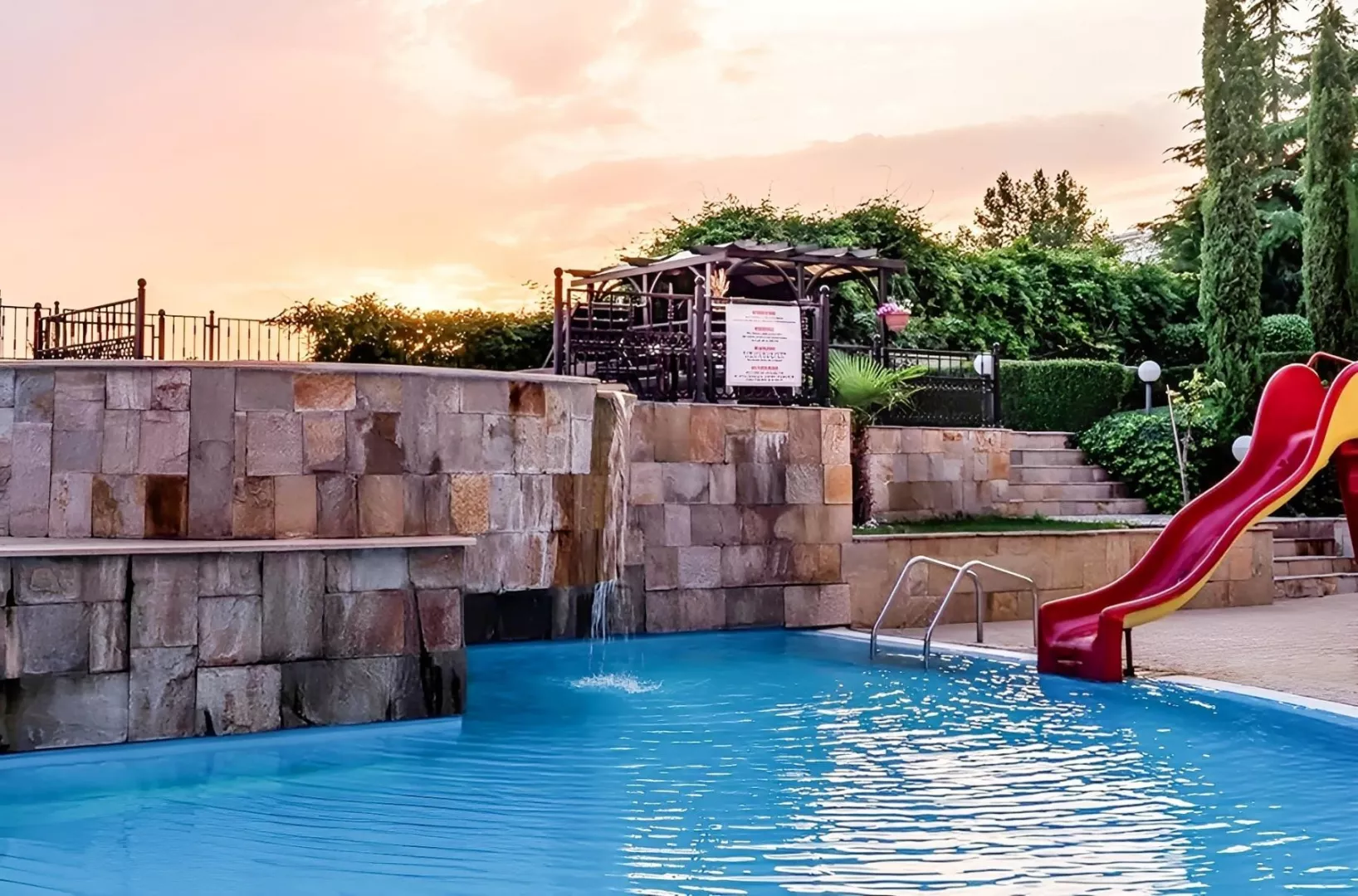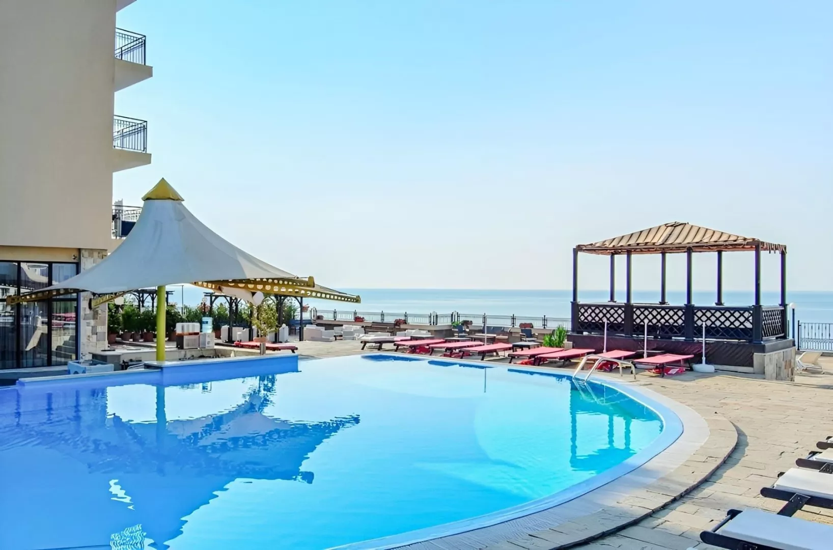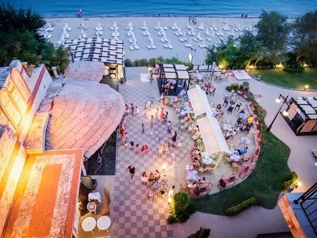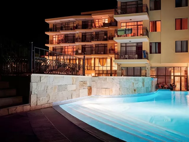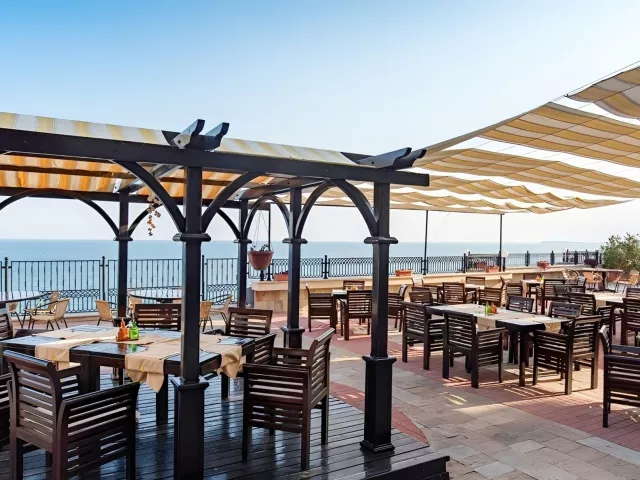 Hotel sa nachádza na miernom kopci priamo pri piesočnatej pláži s pozvoľným vstupom do mora. Centrum letoviska je vzdialené približne 3 km, zatiaľ čo medzinárodné letisko je vzdialené 40 km. Autobusová zastávka sa nachádza priamo pred hotelom, čo uľahčuje dopravu do okolitých oblastí, vrátane živého Slnečného pobrežia.