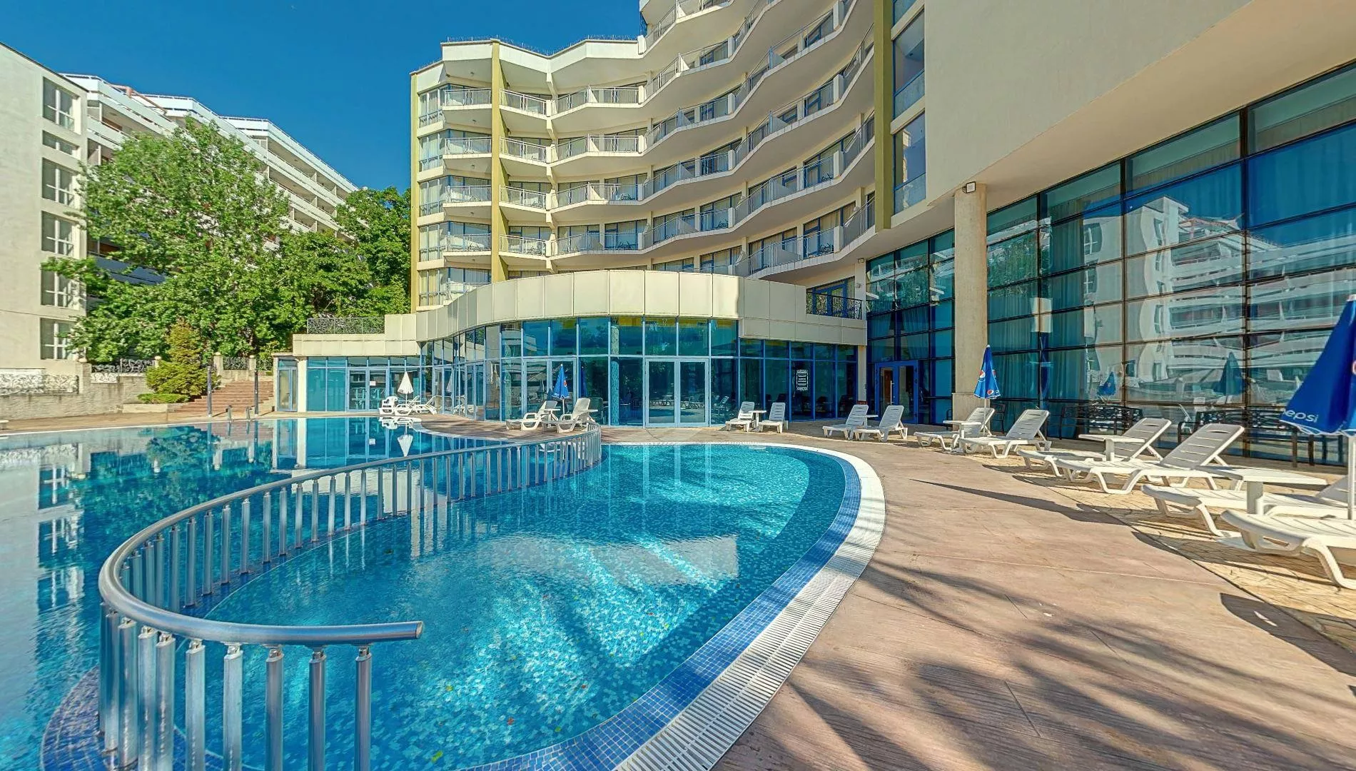 Hotel sa nachádza v pokojnej južnej časti obľúbeného letoviska Zlaté piesky, len 200 m od širokej piesočnatej pláže s pozvoľným vstupom do mora. V blízkosti sa nachádza hlavná ulica s nákupnými možnosťami a atraktívnymi miestnymi atrakciami. Taktiež je v dosahu národný park Zelená Flora a letisko Varna je vzdialené 26 km.